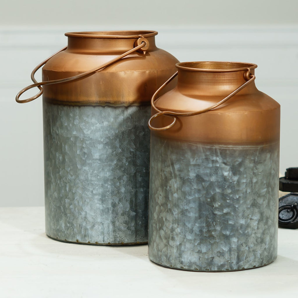Copper galvanized metal bucket, set of 2 - Bombay Mercantile