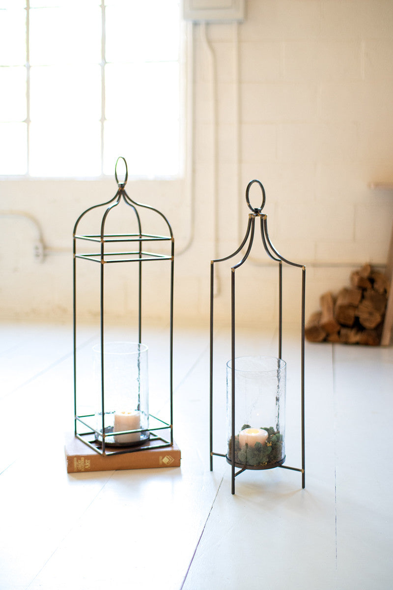 Iron lantern with glass hurricane