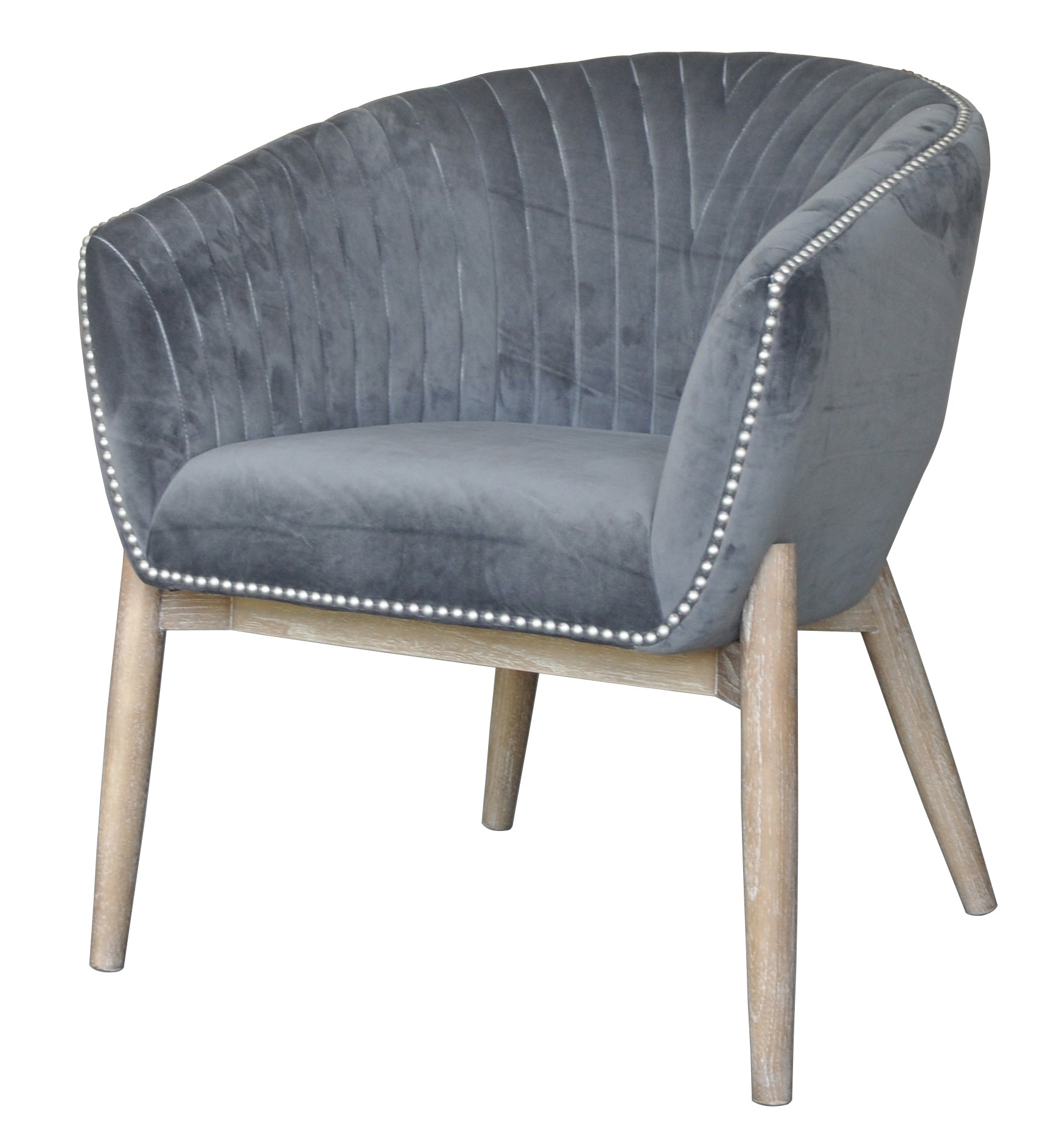 Add style and luxury to your space with this elegant plush velvet chair. Silver nailhead trim and vertical channeling add the perfect finishing details. Constructed with solid wood tapered legs for a modern look and sturdy design