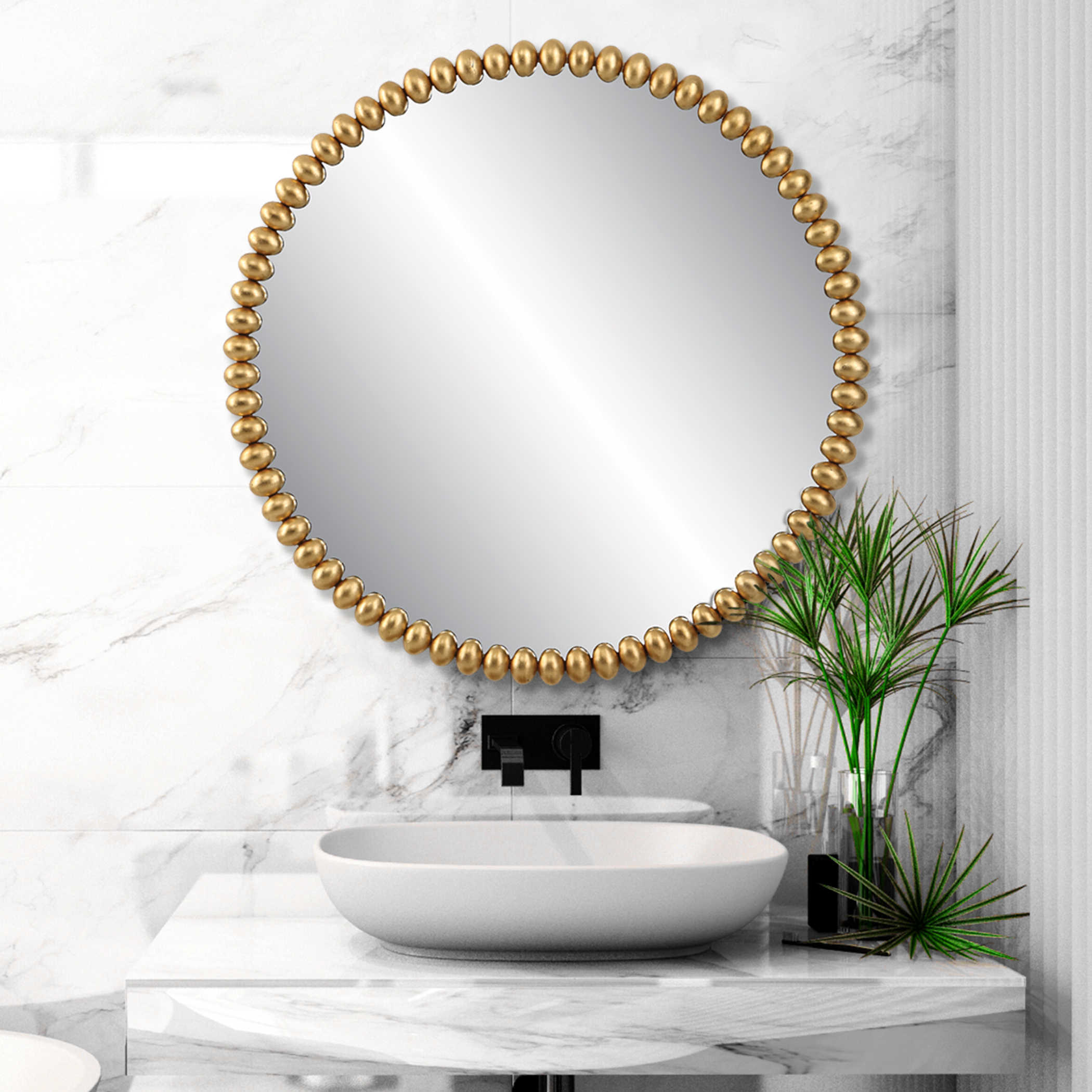 This Round Iron Mirror Features A Sophisticated Beaded Profile In A Rich Antiqued Gold Leaf Finish.