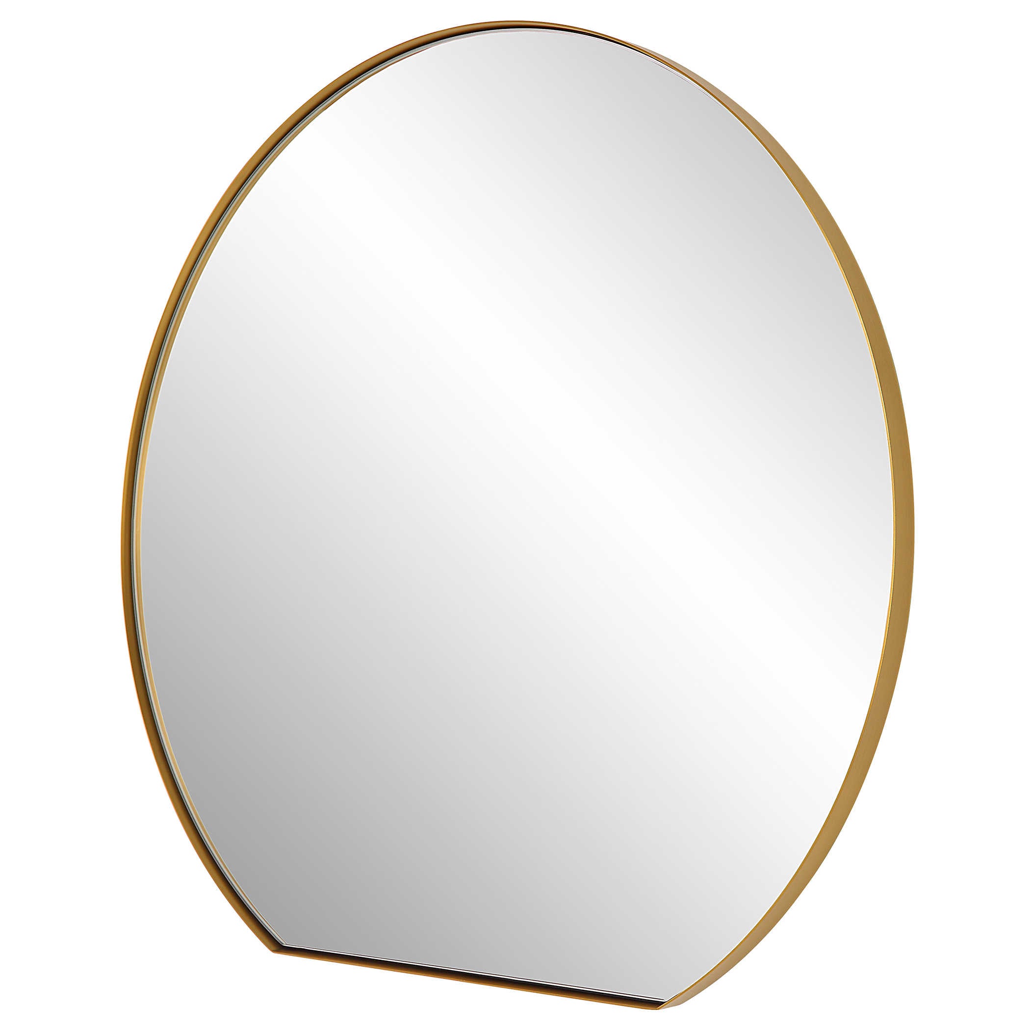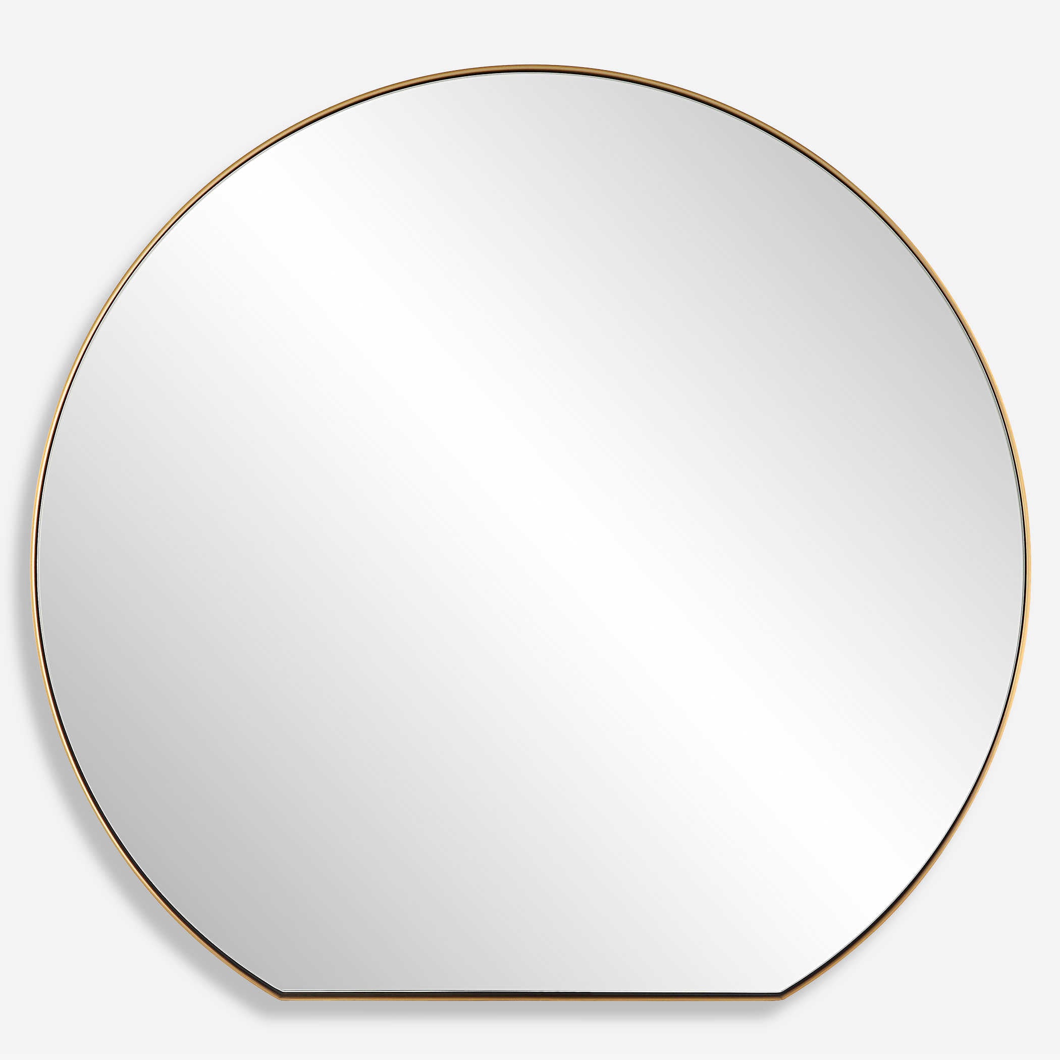 This Sleek Design Features A Plated Brushed Brass Finish Over A Stainless Steel Frame That Surrounds A Floating Polished Edge Mirror.
