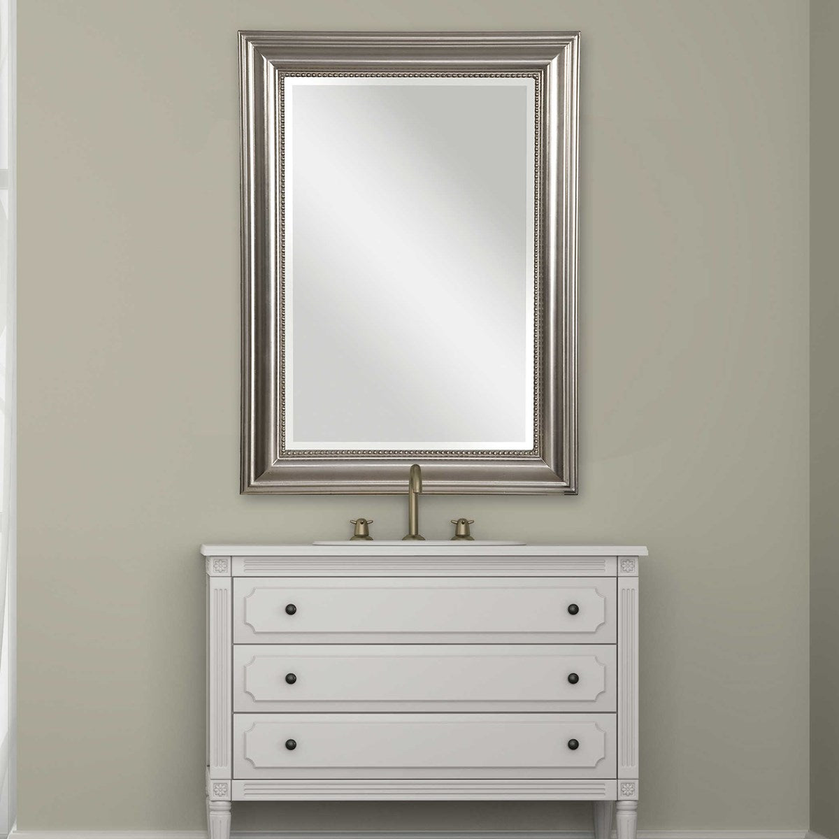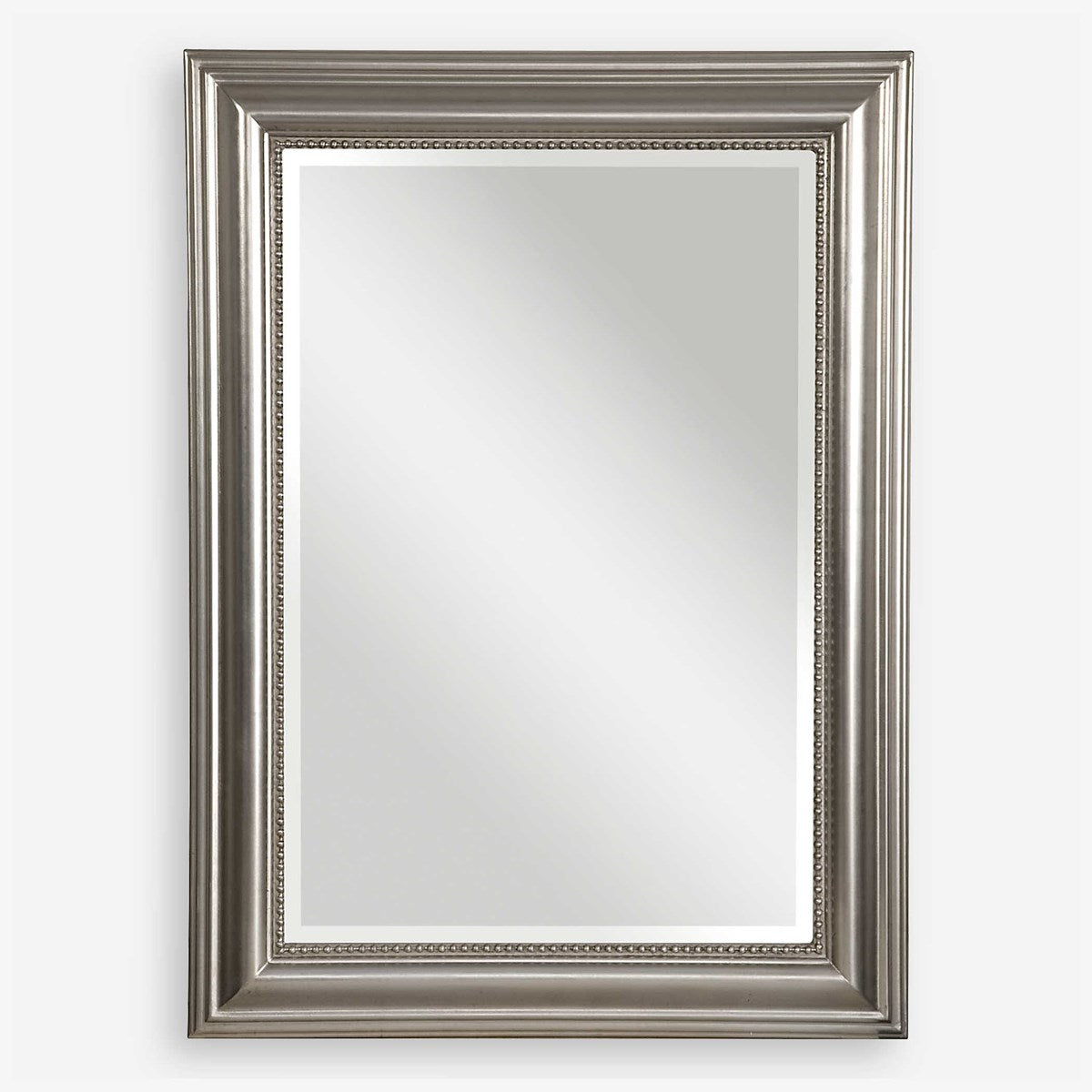 This Decorative Mirror Features A Wood Frame Finished In Silver Leaf With A Gray Glaze. Mirror Is Beveled And May Be Hung Horizontal Or Vertical.