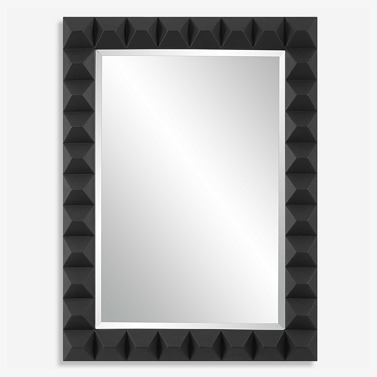 The Studded Mirror Has An Updated Appeal To A Timeless Design Featuring A 3-dimentional Pattern Finished In A Sleek Matte Black. Mirror Has A Generous 1 1/4" Bevel. May Be Hung Horizontal Or Vertical.