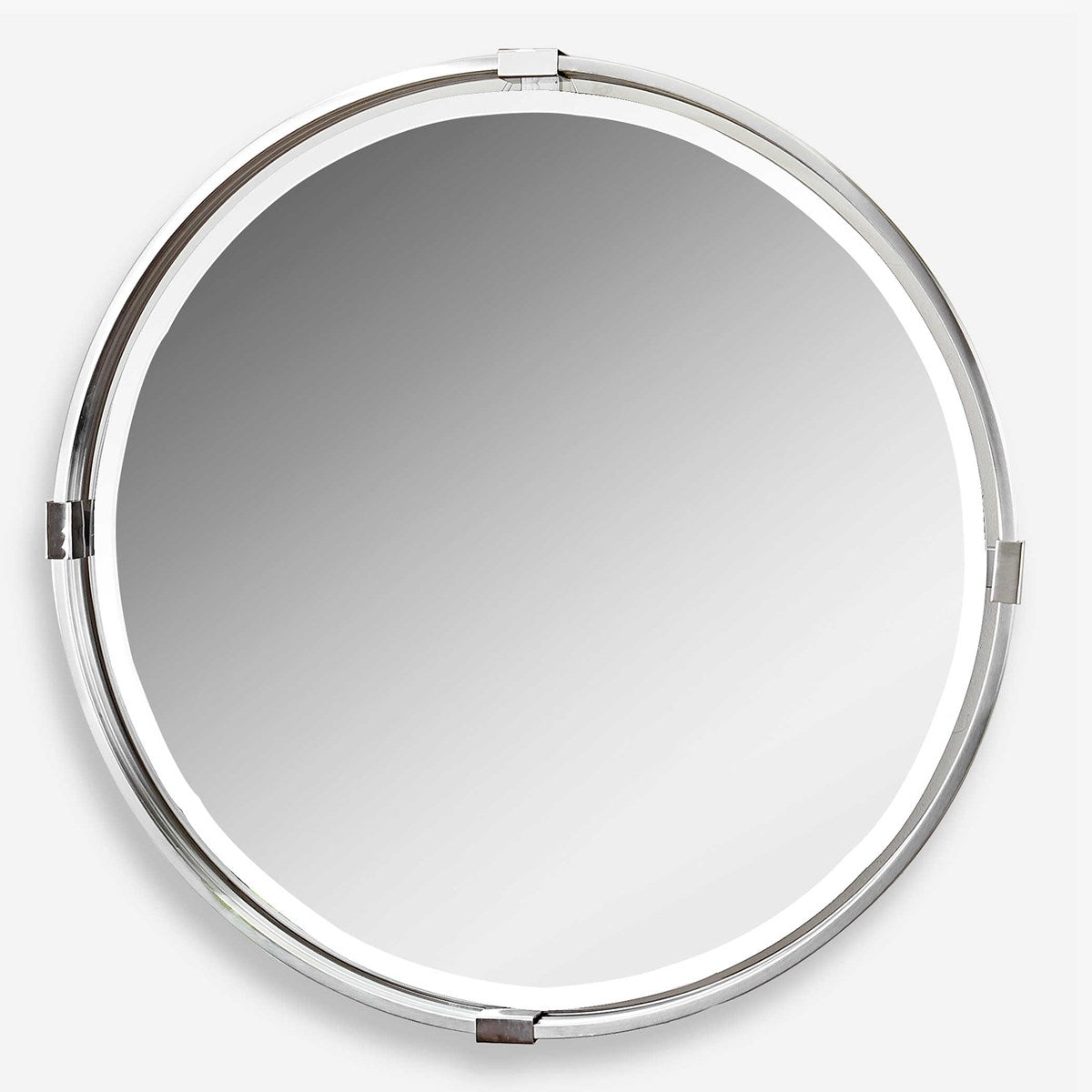 Refined Metal Frame Finished In A Plated Brushed Nickel, Displaying Layers Of Depth Surrounding A Floating Bevel Mirror With A Generous 1 1/4" Bevel.