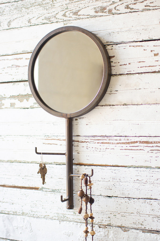 Round wall mirror with rotating coat hooks - The Nifty Decor