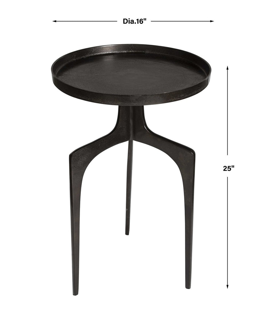 Providing An Organic Global Feel, This Cast Aluminum Accent Table Features A Shapely Curved Base And Round Top, Finished In A Plated Antique Bronze.