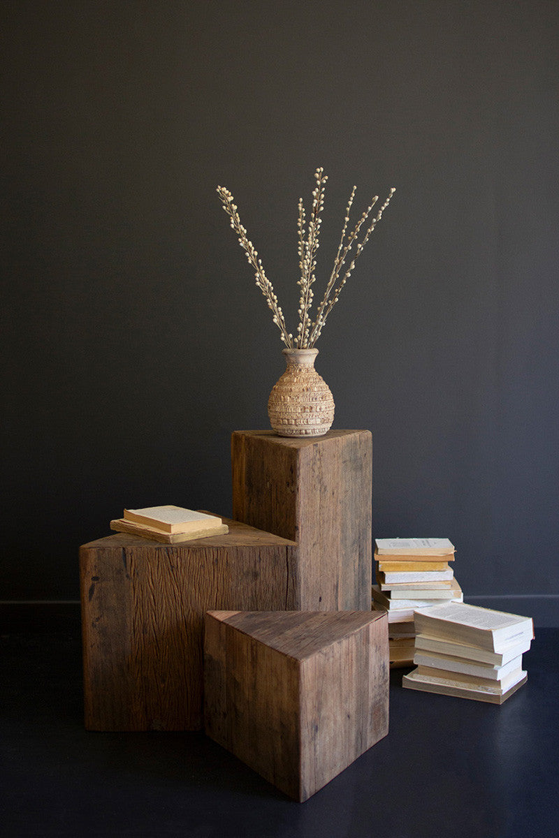 Tall Recycled Wood Triangle Accent Pedestal