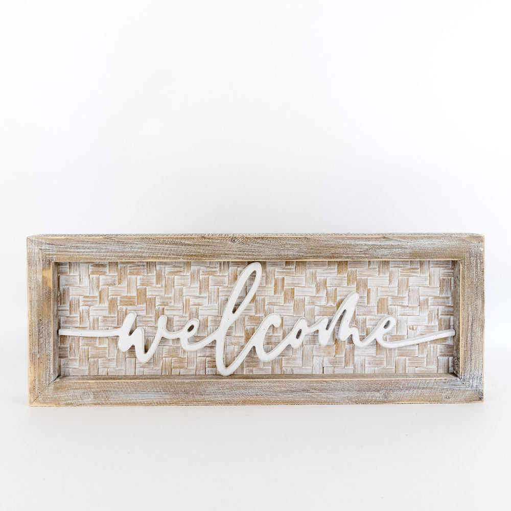 Bamboo wood framed sign (WELCOME) in white, black and Natural