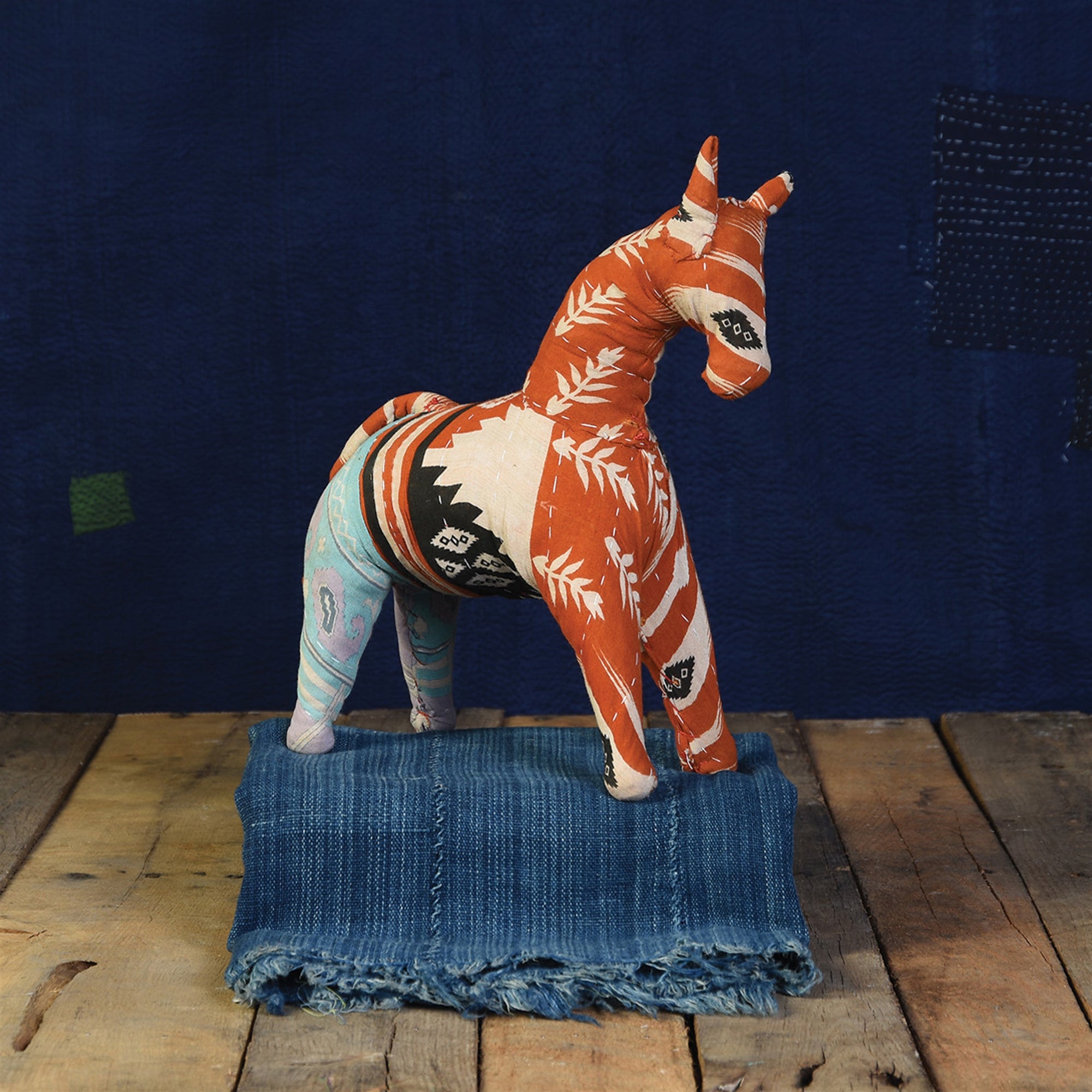 The most popular form of embroidery practiced by rural women, the Kantha stitch is run over several layers of old sari fabric to make a thin piece of fabric thicker. Using remnants of vintage fabric each Kantha Animal will be unique in color, pattern and texture. A true one of a kind.