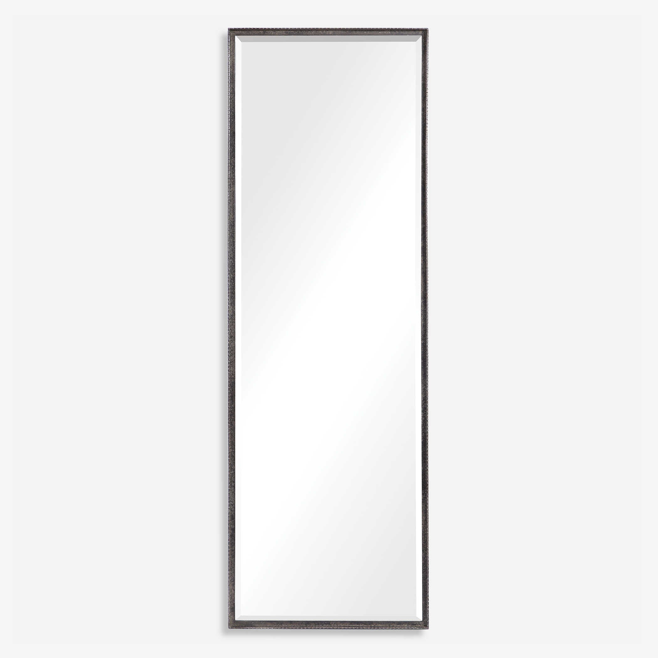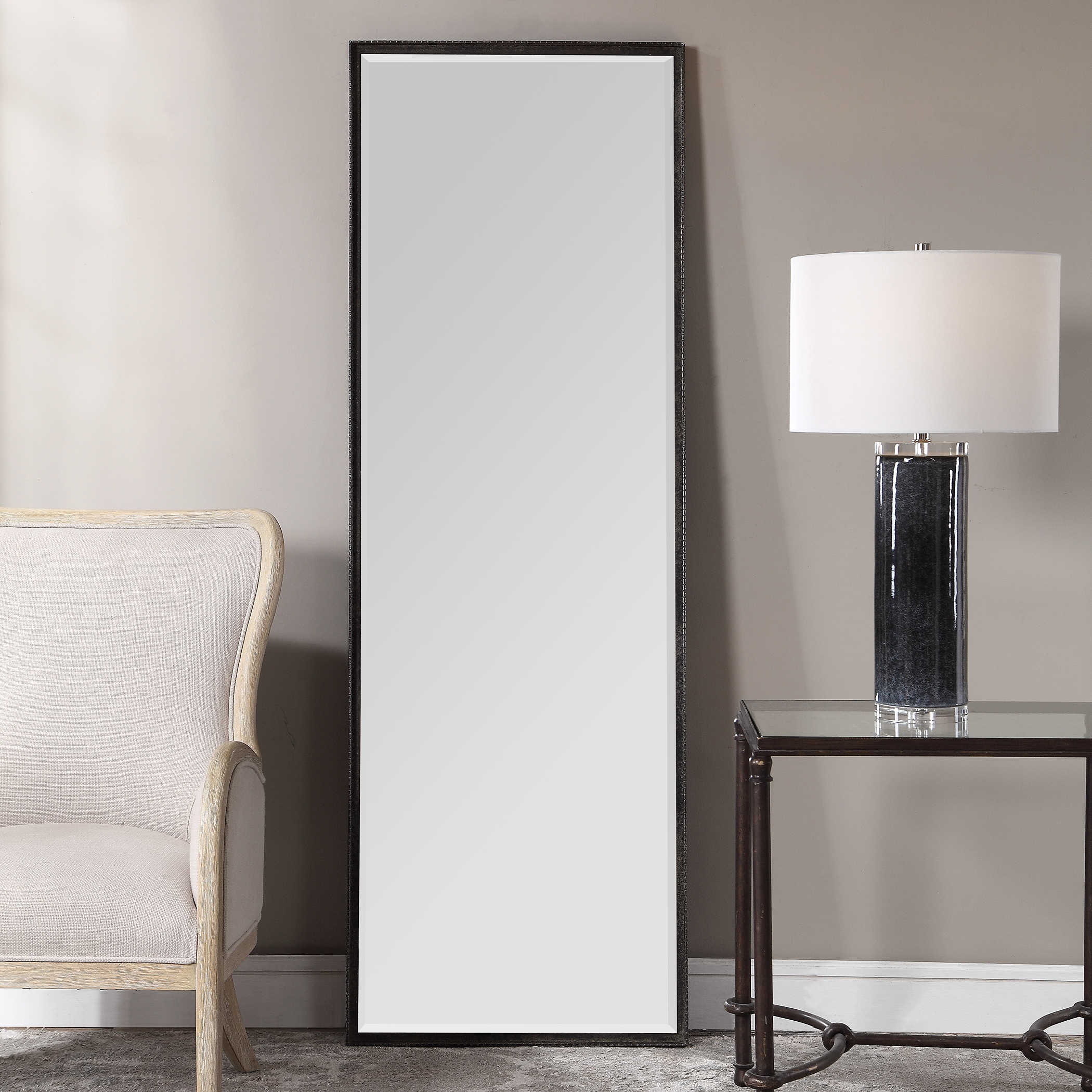 This Simple Vanity Mirror Features An Iron Construction With Detailed Edges. The Slight Profile Frame Is Finished In A Distressed Rustic Black With Aged Champagne Highlights. May Be Hung Horizontal Or Vertical.