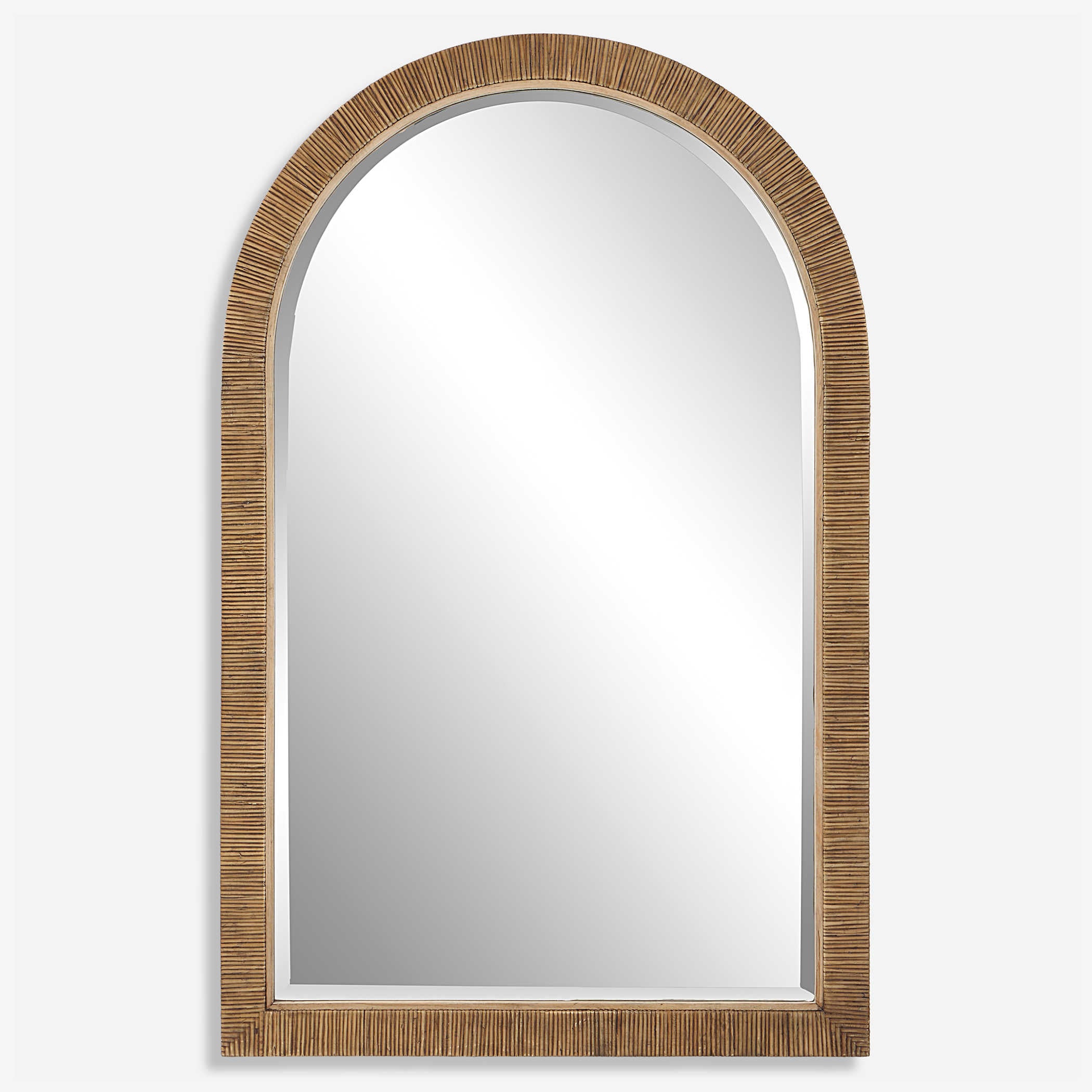 This Classic Arch Brings An Updated Feel With A Natural Rattan Wrapped Frame And A Fir Wood Inner Liner. Mirror Has A Generous 1 1/4" Bevel.