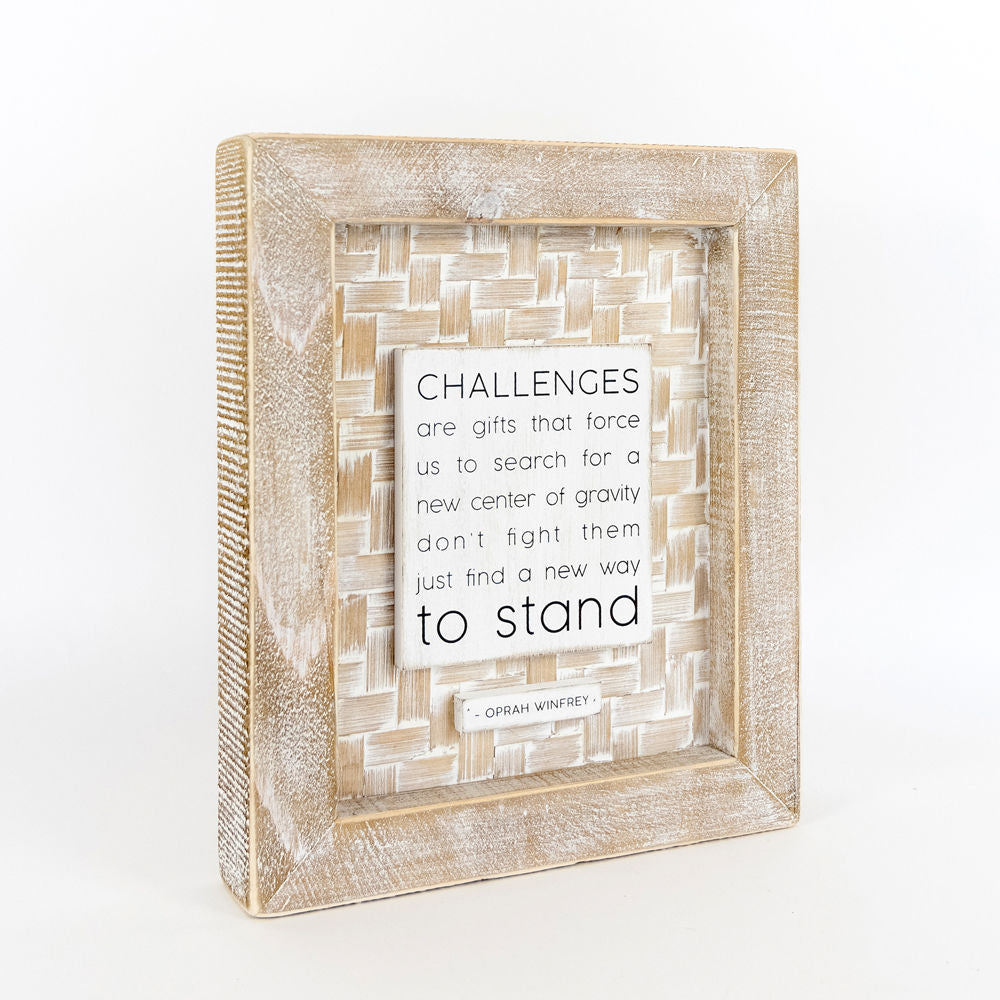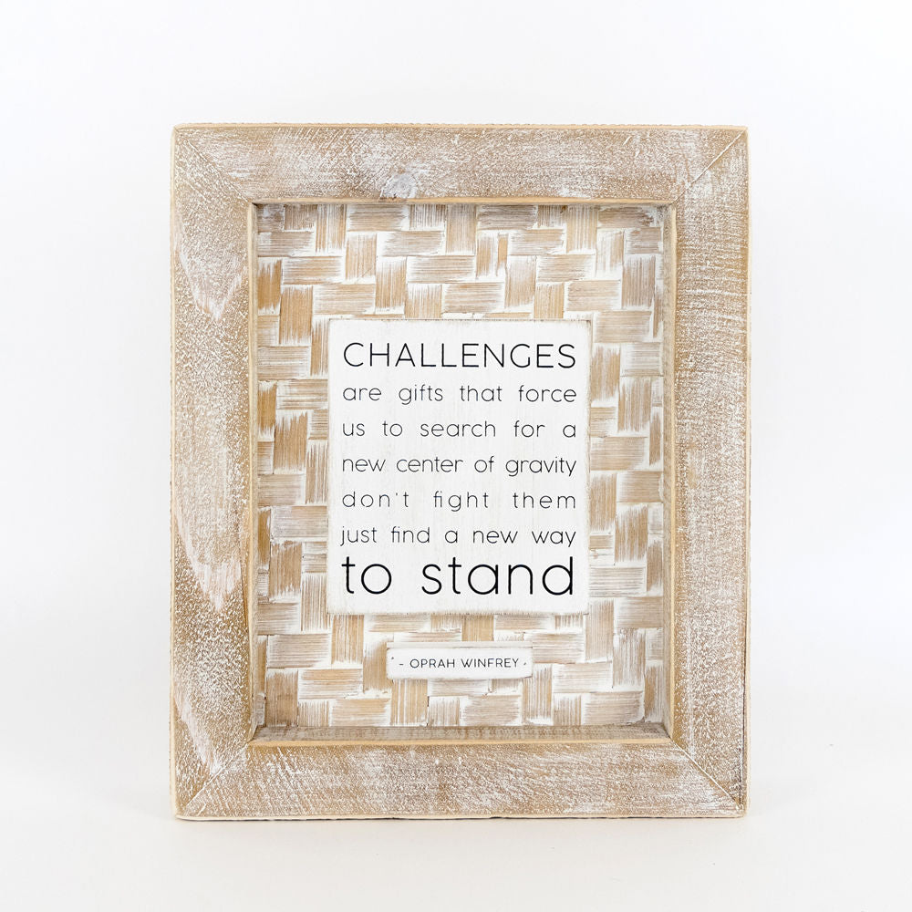 Bamboo Wood Frames sign (CHALLANGES) in White, Brown n Natural color