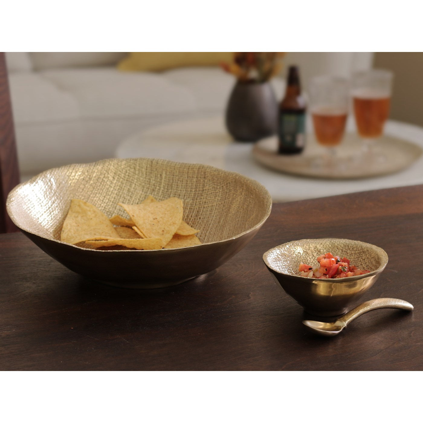 The new SIERRA MODERN Chelsea medium bowl in champagne gold is a glittering example. Its richly textured surface is made unique and fresh with a proprietary metallic finish that adds a hint of glam to any decor. A great bowl with a fabric-inspired texture, and a brilliant metallic finish. Food- and dishwasher-safe, decorative, and also perfect for serving. These  intensely handmade products use eco-friendly and sustainable materials and are crafted by artisans who trace a heritage of metalworking for generations. Made of a top quality, FDA safe, easy-care, oven and freezer friendly aluminum alloy.
