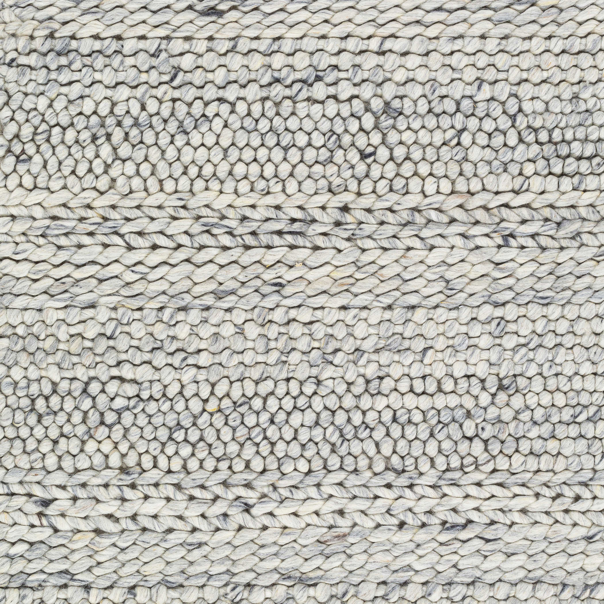 Hand Woven Ivory Wool With Subtle Light Gray Accents, Featuring Alternating Textures Of Large Loops, Knots, And Basket Weave Patterns.