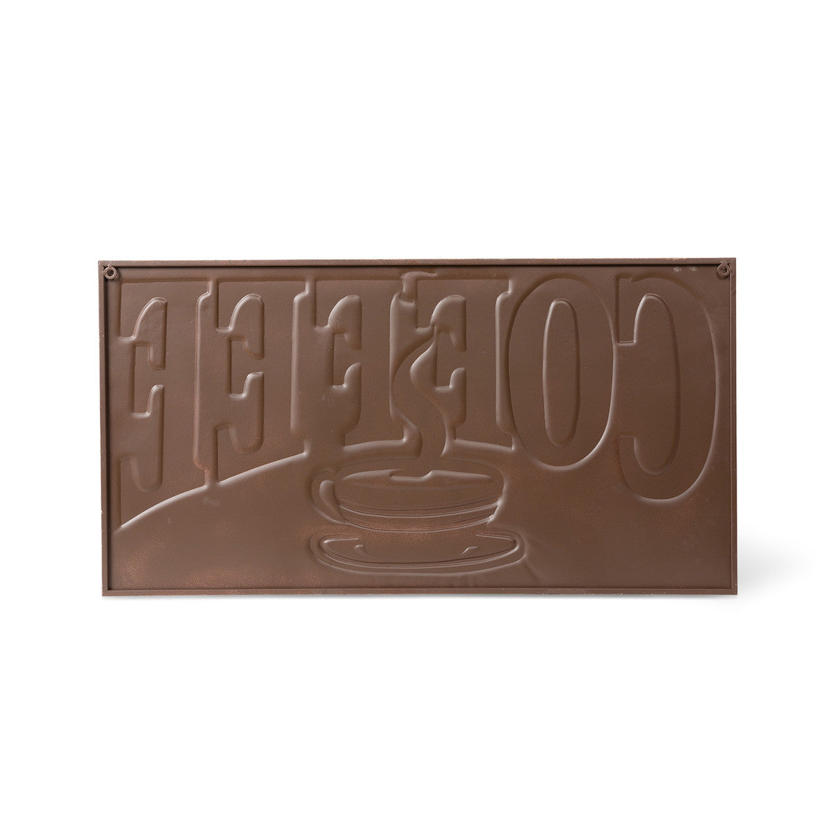 Whether you're a simple drip coffee lover or a connoisseur, this charming sign has you covered. Perfect for a café or breakfast nook, the weathered iron sign adds character to your space. Can also be hung outdoors.