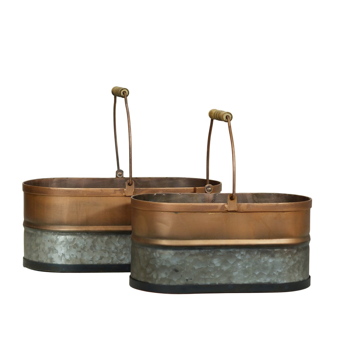 Copper galvanized metal bucket, set of 2