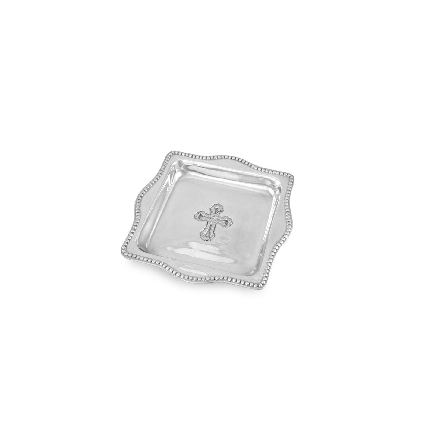 A lovely, delicate embossed cross makes this square tray a thoughtful, reverent and practical gift for baptism or first communion. A lovely addition to the nursery, or any other room in the house. Holds standard size post-it notes as well. Other Baby Collection Cross items available; collect the set. Ideal heirloom gifts for Baby showers, baptisms, birthdays, and holidays. Made of an FDA safe, easy-care, oven and freezer friendly aluminum alloy.