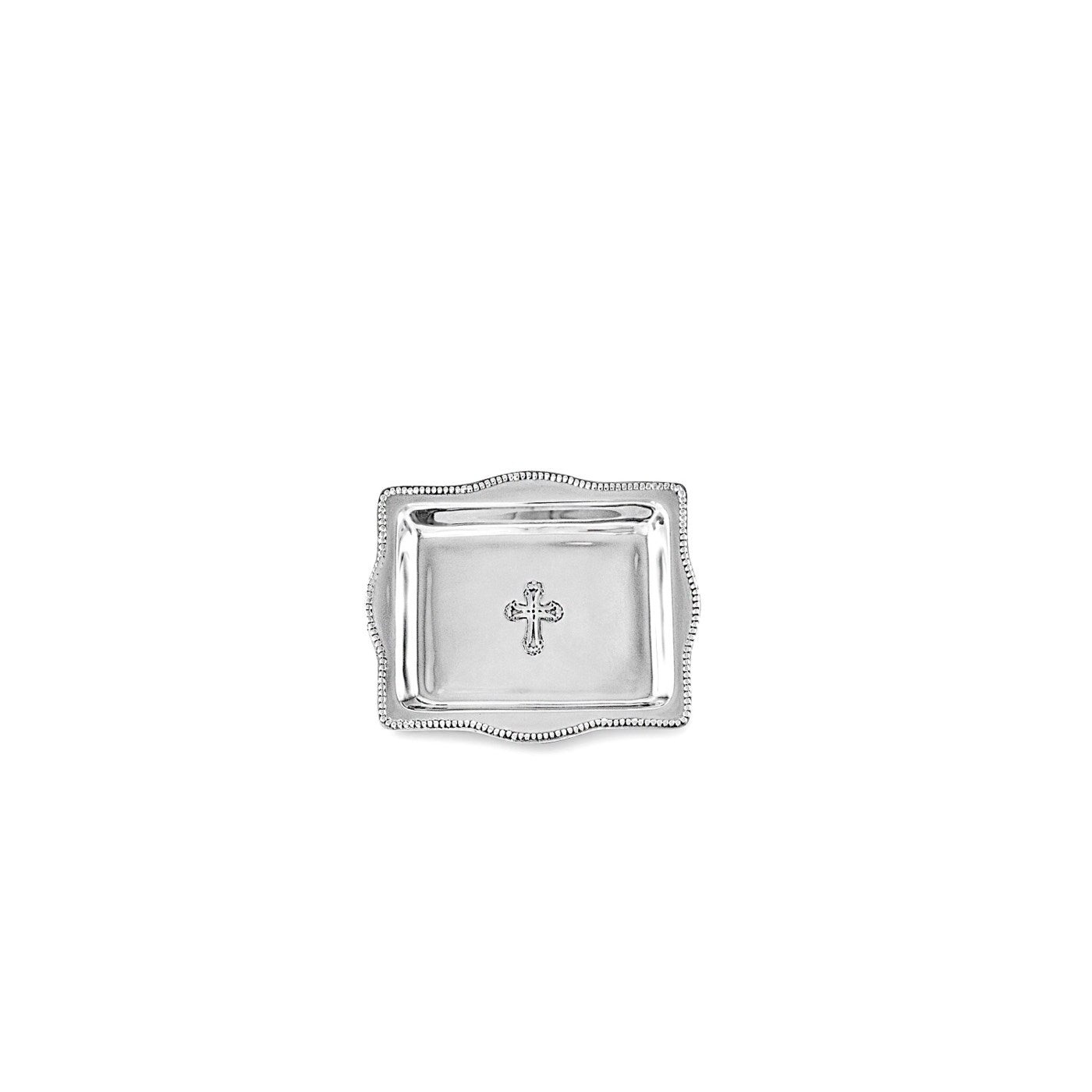 Of heirloom quality, this lovely, delicate embossed cross makes this square tray a thoughtful, reverential and practical gift for baptism or first communion. A lovely addition to the nursery, or any other room in the house. Other Baby Collection Cross items available; collect the set. Ideal heirloom gifts for Baby showers, baptisms, birthdays, and holidays. Made of an FDA safe, easy-care, oven and freezer friendly aluminum alloy
