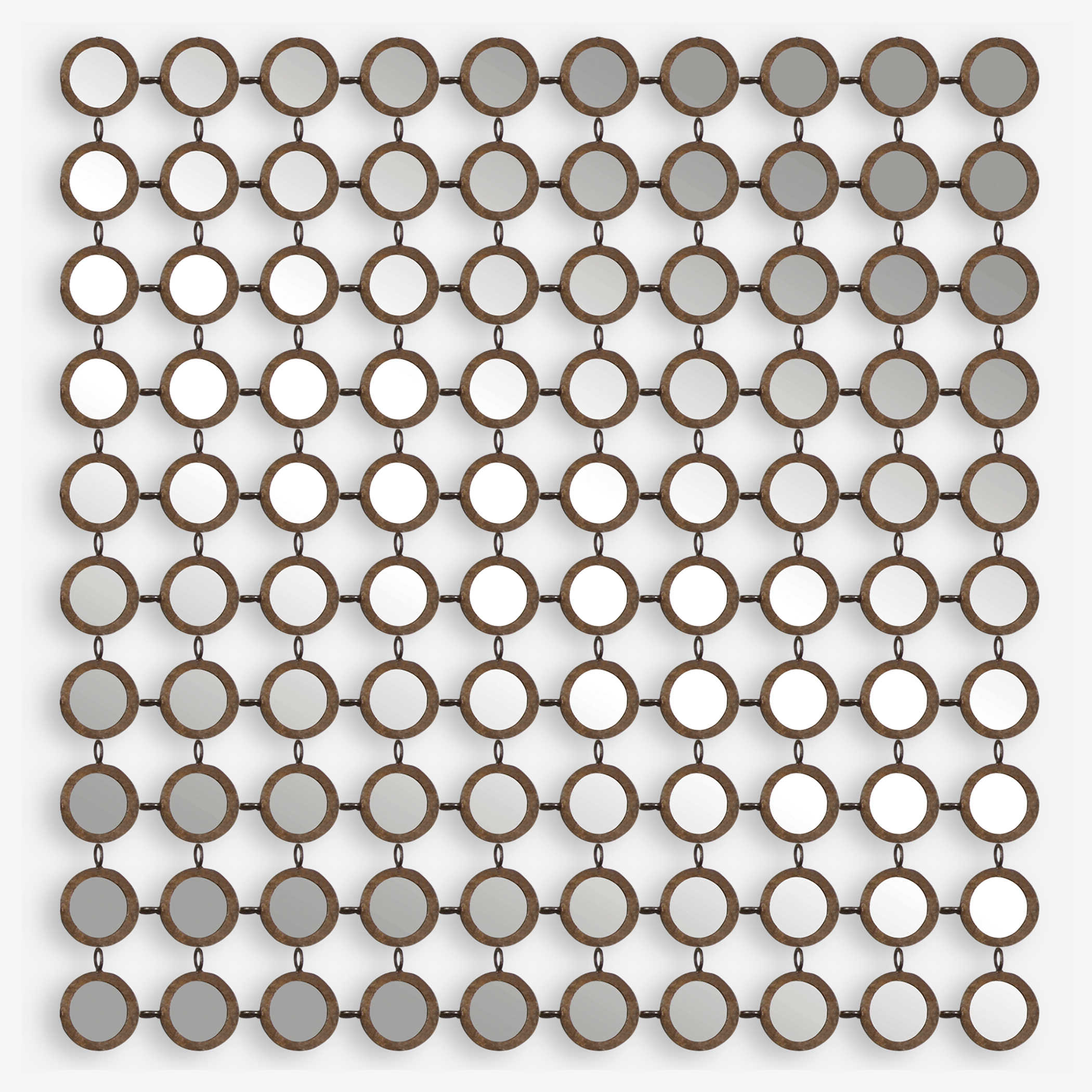 Numerous, Small Round Mirrors Are Joined By Hand Forged Metal To Create This Mirror. Finish Is Lightly Antiqued Silver Champagne Leaf.