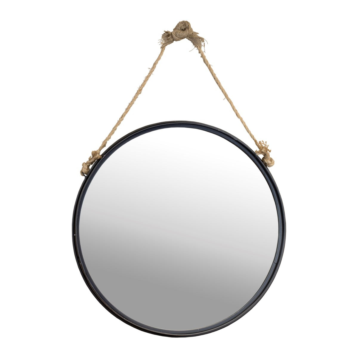 Distressed metal round hanging mirror 24"