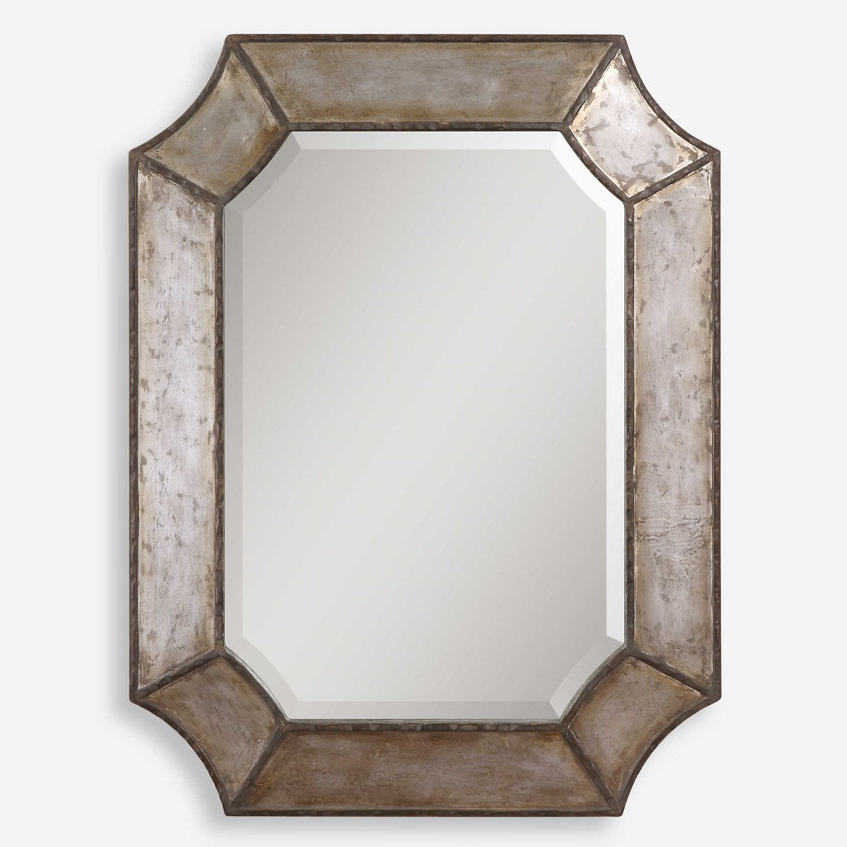 Frame Is Made Of Distressed, Hammered Aluminum With Burnished Edges And Rustic Bronze Details. Mirror Has A Generous 1 1/4" Bevel And May Be Hung Horizontal Or Vertical.