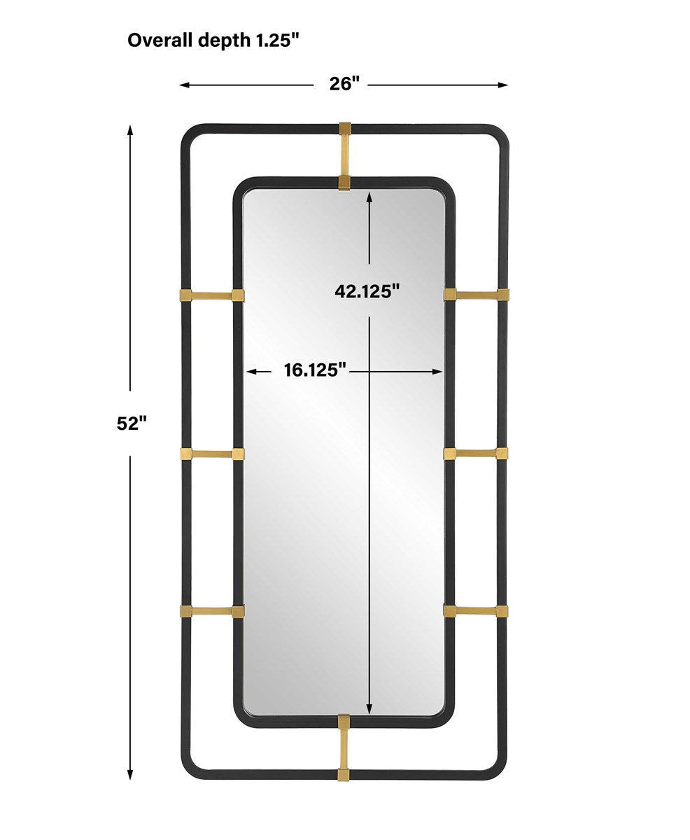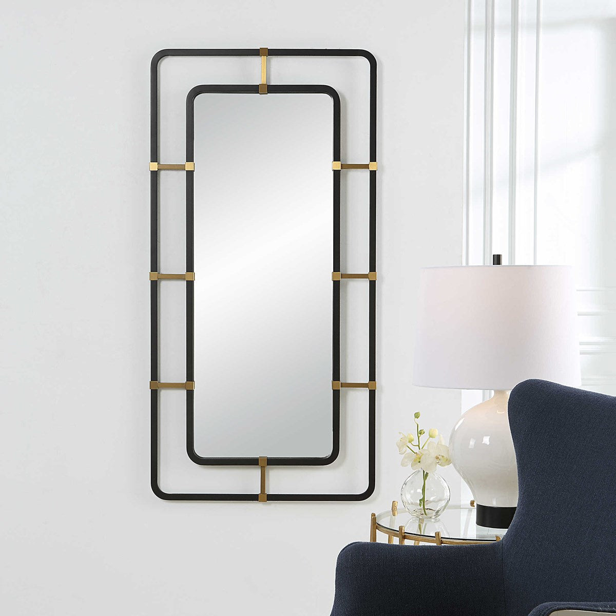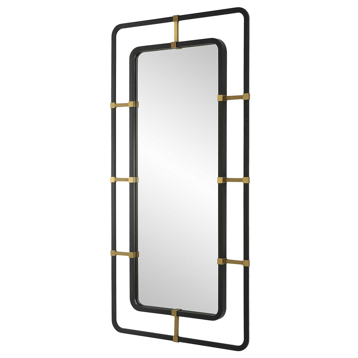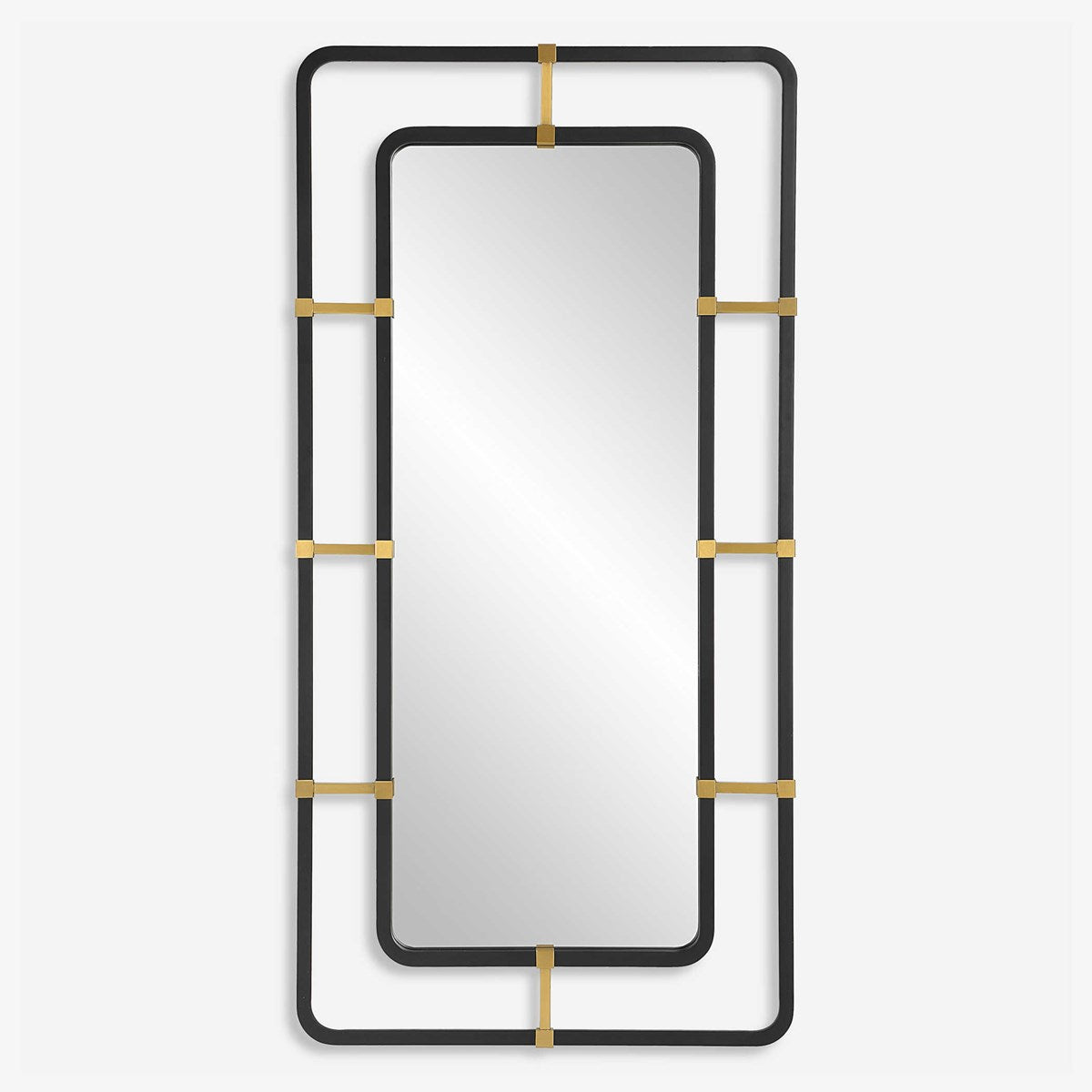 This Contemporary Style Mirror Is Crafted With A Stainless Steel Frame Finished In A Matte Black Accented By Industrial Inspired Clips In Plated Brushed Brass. May Be Hung Horizontal Or Vertical.