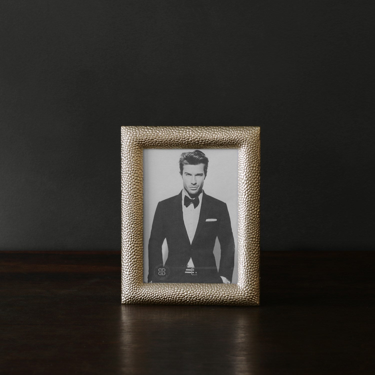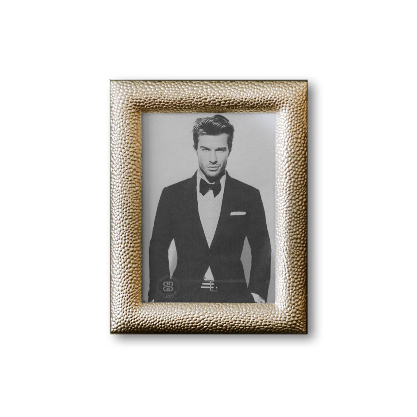 The shimmering Georgina frame features a modern and exciting proprietary metallic gold-tone finish, and a texture reminiscent of shagreen. Designed to display a 5x7 photo (vertically or horizontally), the luxe frame looks amazing on a desk, mantle, or table. The delightfully decorative piece adds a modern new edge to Beatriz Ball’s award-winning designs. These products are intensely handmade products use eco-friendly and sustainable materials and are crafted by artisans who trace a heritage of metalworking for generations. Made of a top quality, easy-care, aluminum alloy. Tarnish free!