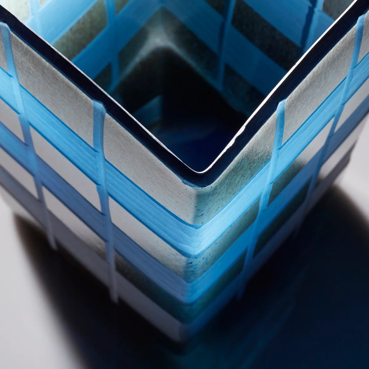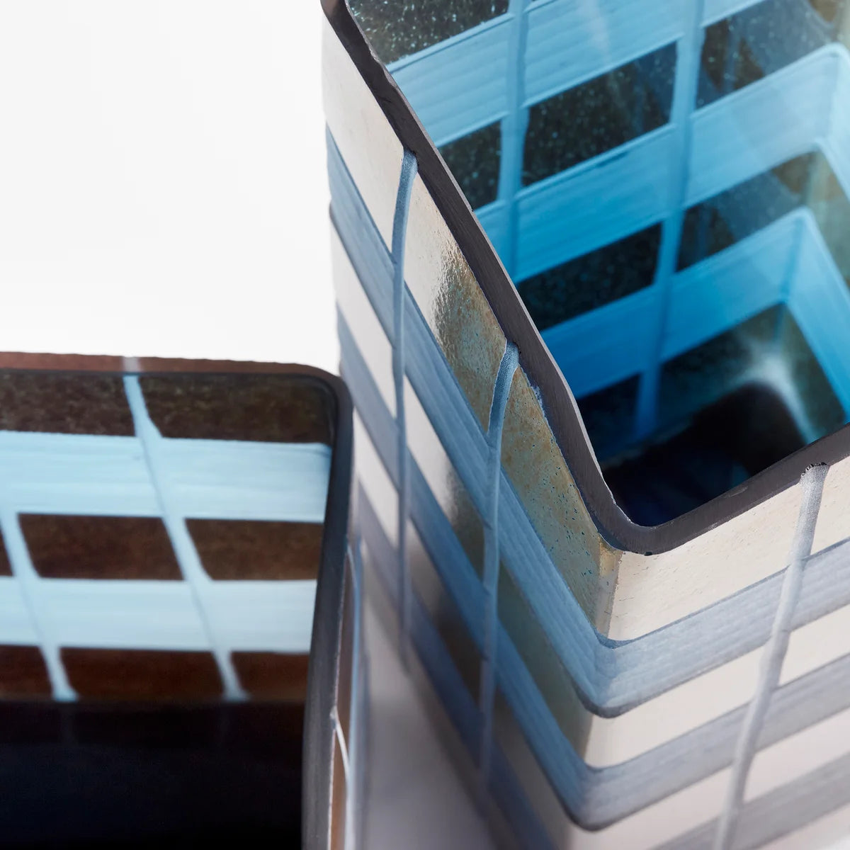 A colorful grid, in boxed forms is the idea behind these glassware accents. Add a linear touch to your tabletop ensemble with the Irridescent Gold and Blue Glass Vases. Available in two size options, these eclectic accents feature a two toned design in a combined iridescent gold and blue finish. These contemporary vessels are ideal for your spring floral arrangements. Perfect for any style design: contemporary, traditional, or transitional, these glassware pieces will fit your needs.