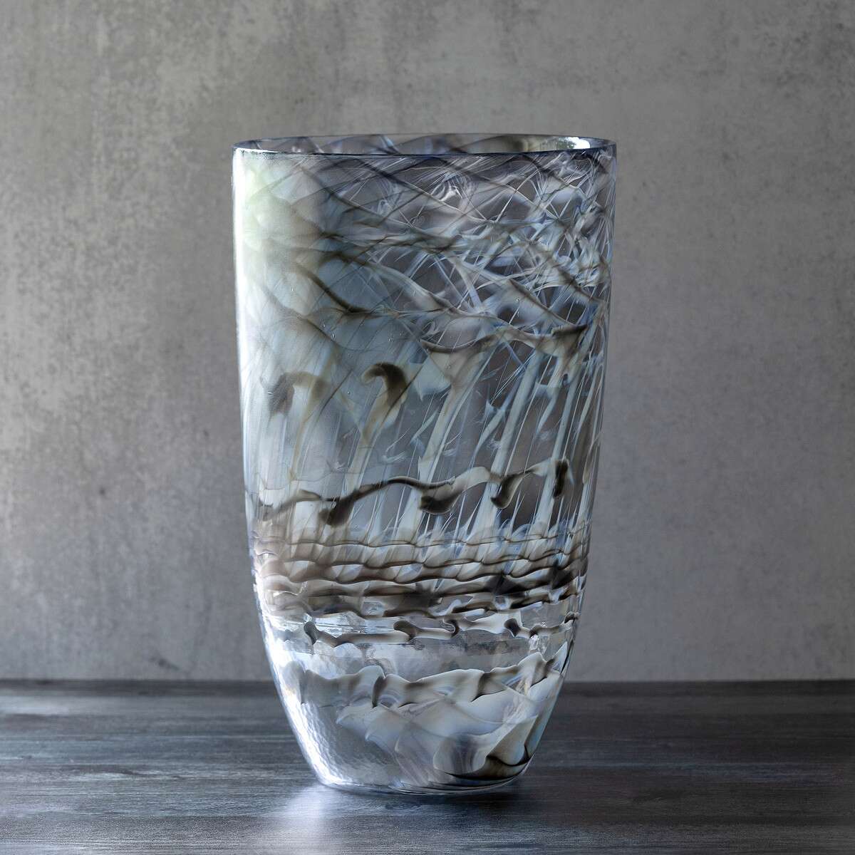 Murano glass is known for the exceptional technique of glass-making that results in the rich coloring and unique shapes and patterns it creates. Our Jagger Collection is just that. Each piece is unique and handmade by Italian artisans. You'll truly have a work of art. With its shades of grey and fluid pattern, this glass vase will be a standout on your entry for dining table. Pair it with the Jagger glass bowl or plate to have a stunning collection.
