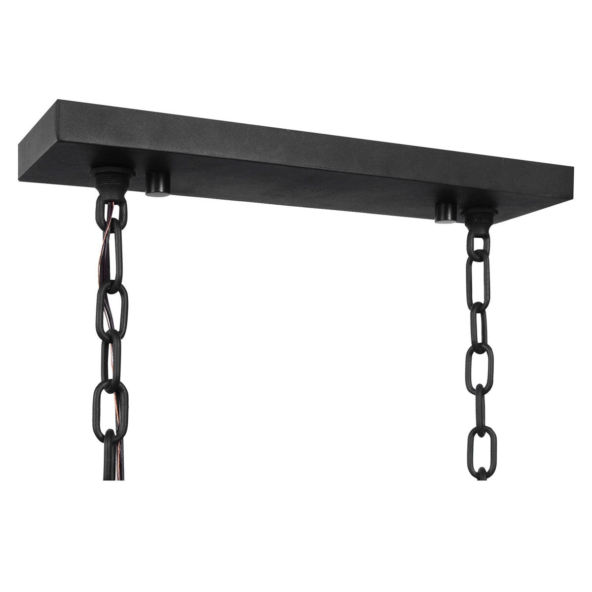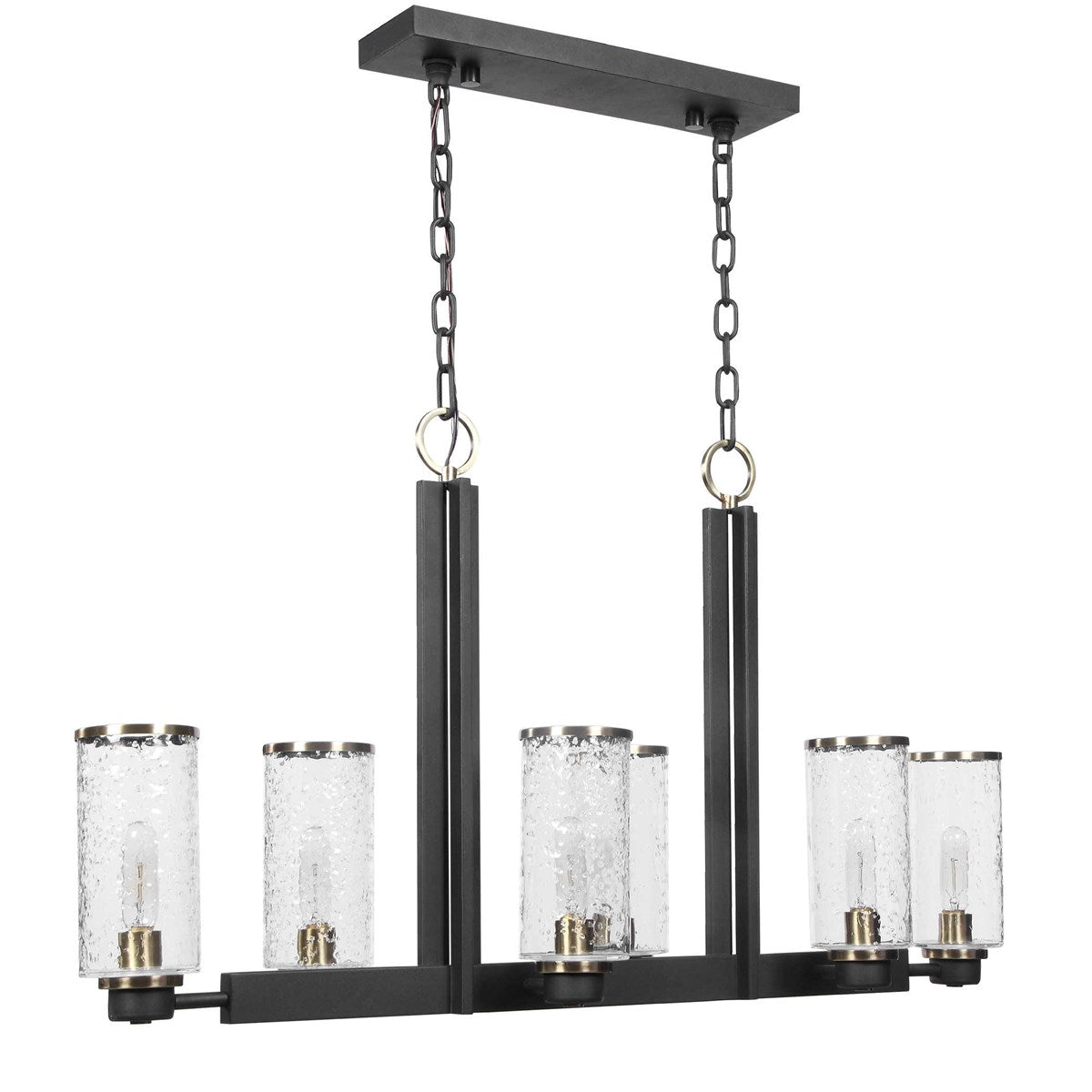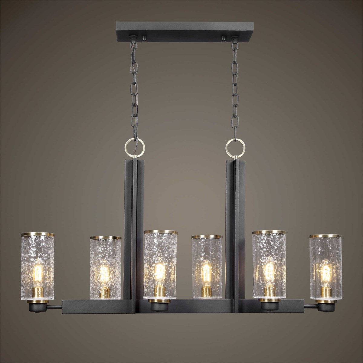 Refined Industrial With Clean Lines On Our 6 Lt. Island Features A Sanded Black Finish On The I-beam Style Frame With Refined Antique Brass Accents And Clear Meteor Shower Glass Shades. 6-60 Watt Max Edison Sockets. Bulbs Not Included. Supplied With 20' Wire And 7' Chain For Adjustable Installation.