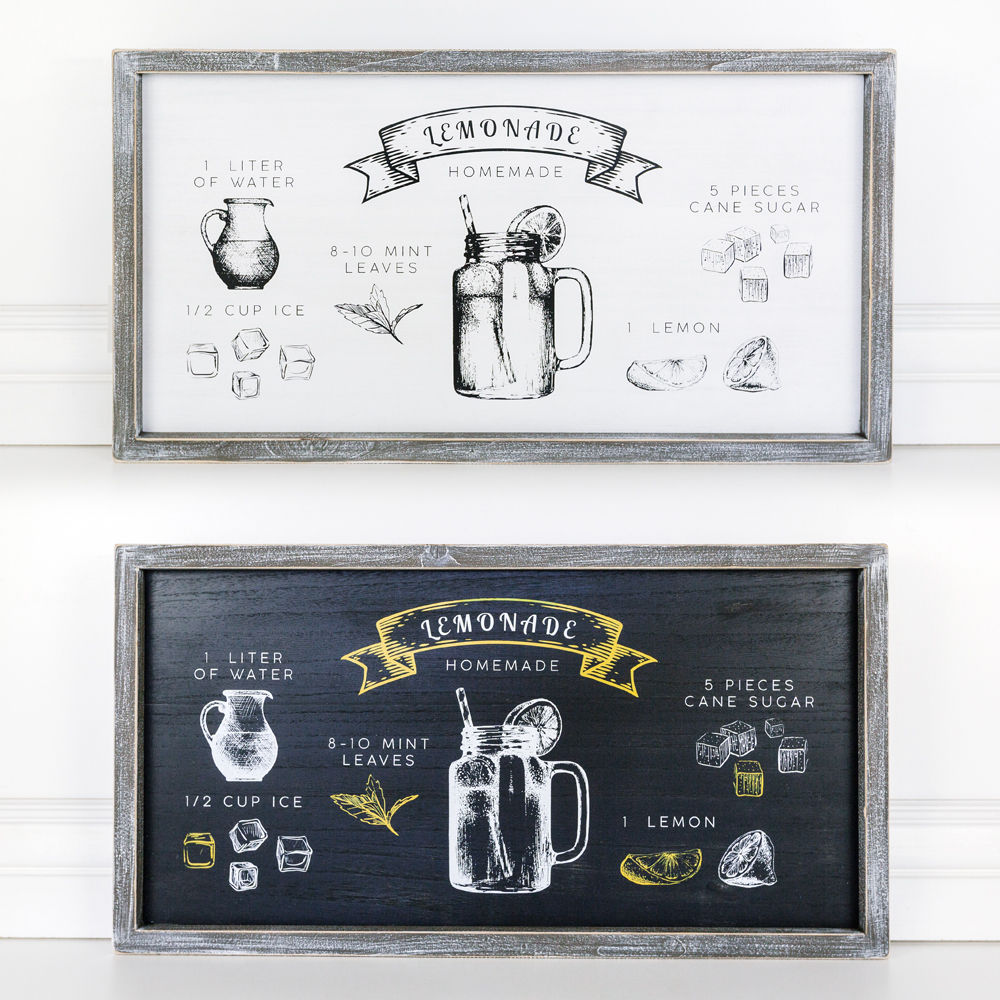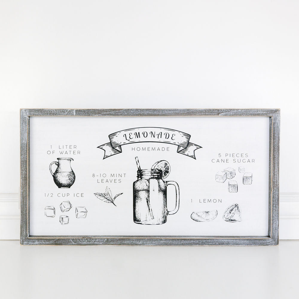 This wood frame sign bears the "Lemonade" message. Using different colors including white, yellow, and black, this wood frame sign would match well with your other Everyday accessories.