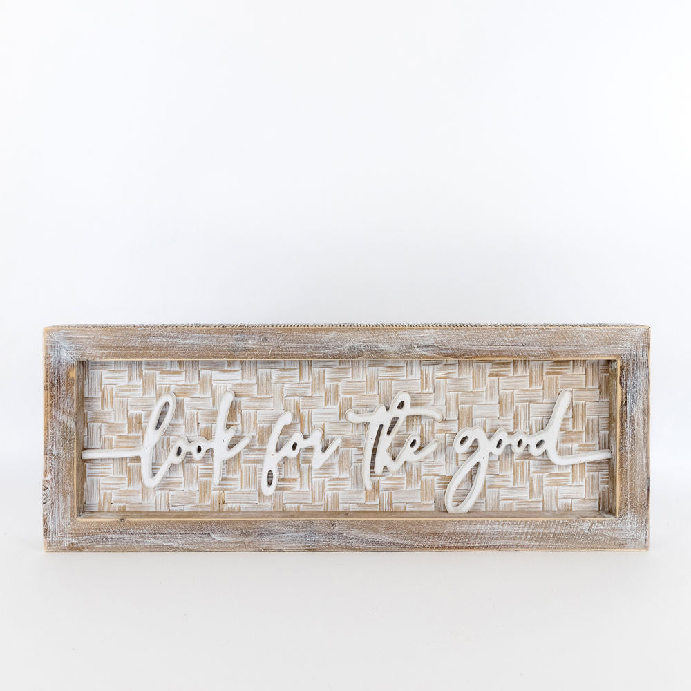 Bamboo wood framed sign (LOOK GOOD) in white, black and Natural