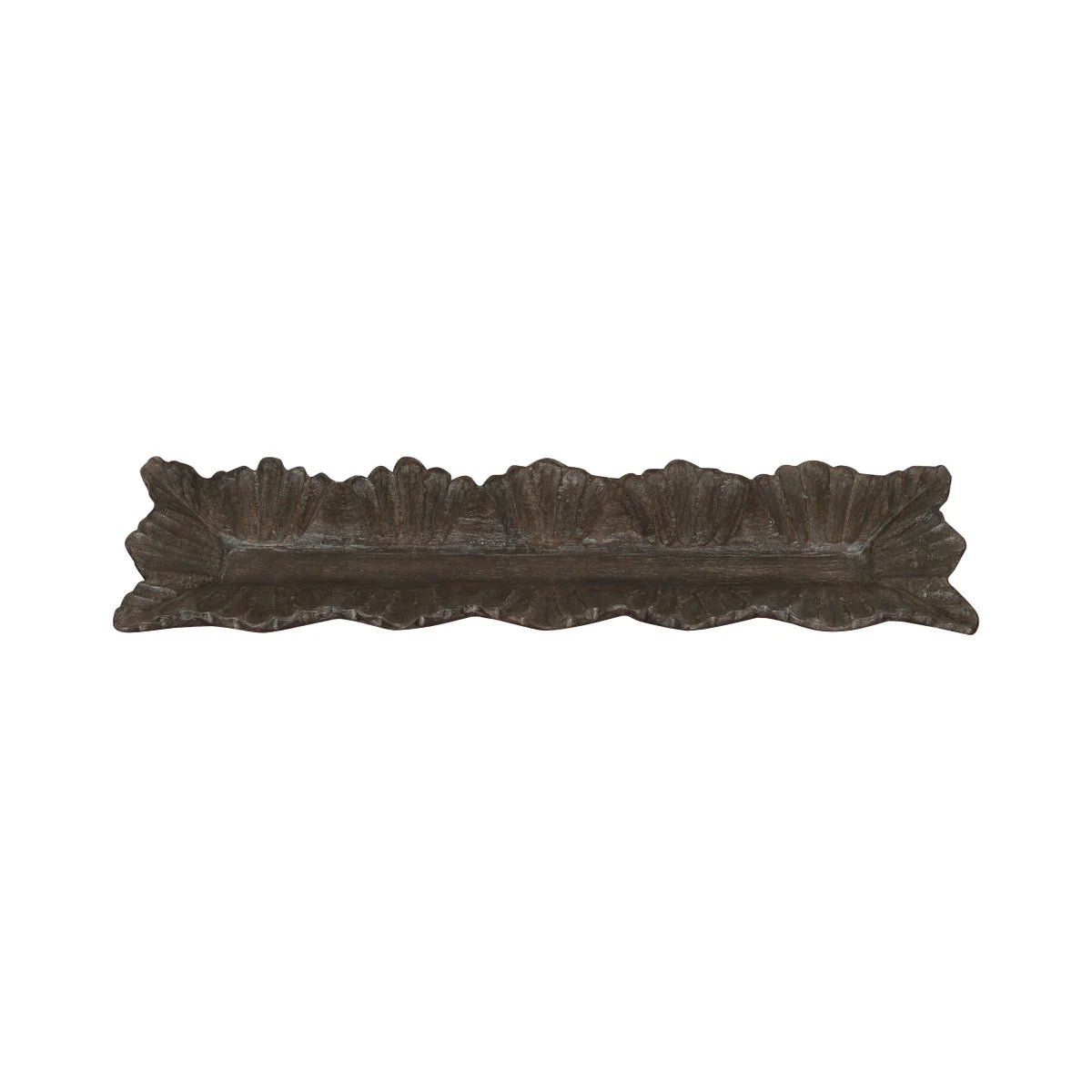 Ideal for entertaining, the Lorenza tray is large in scale and bears intriguing detail fit for any tablescape. Hand-carved Mangowood is sculpted into a long, rectangular shape with a ruffled border surrounding the center of the tray. The natural appeal of the Lorenza tray grants it the opportunity to support many different stylings.