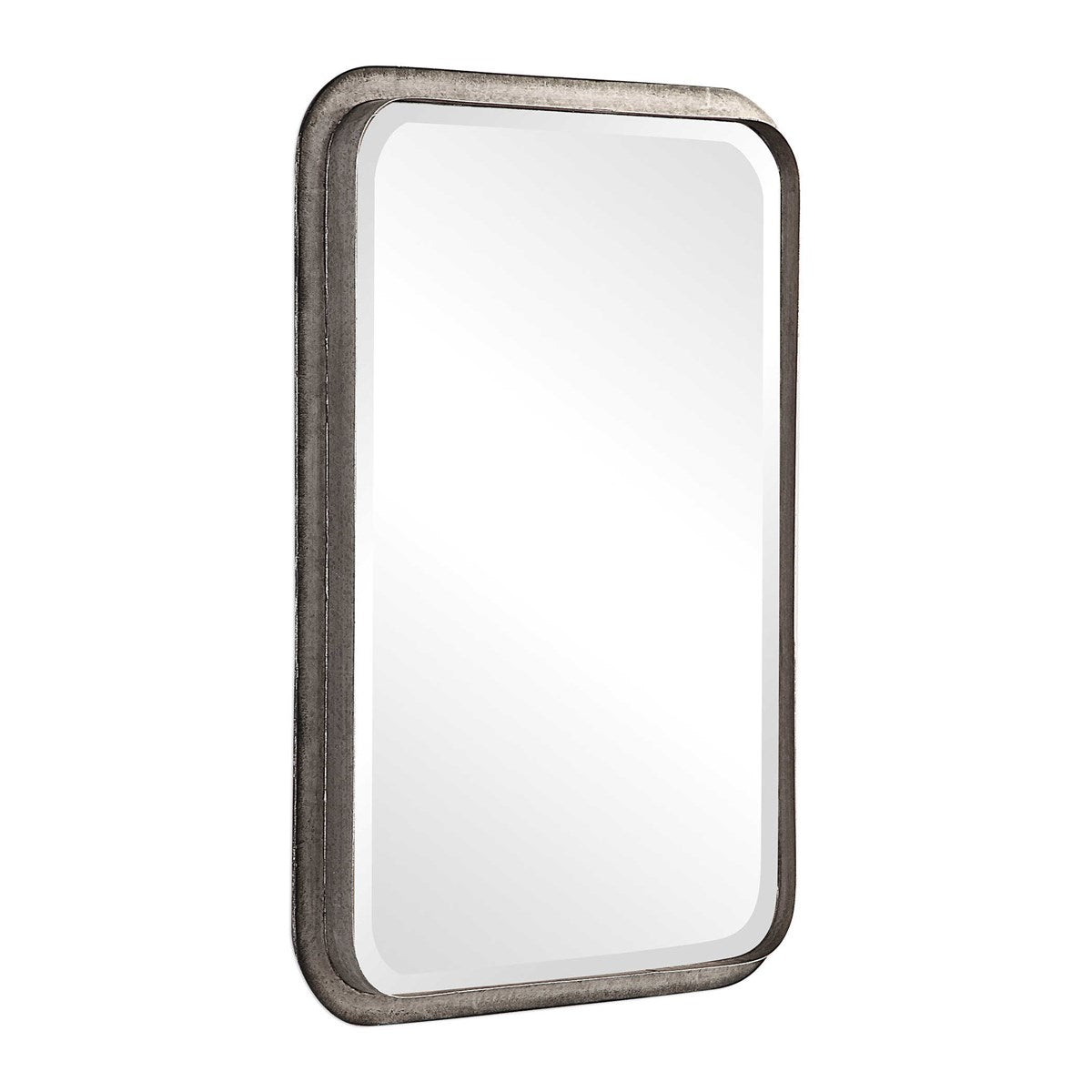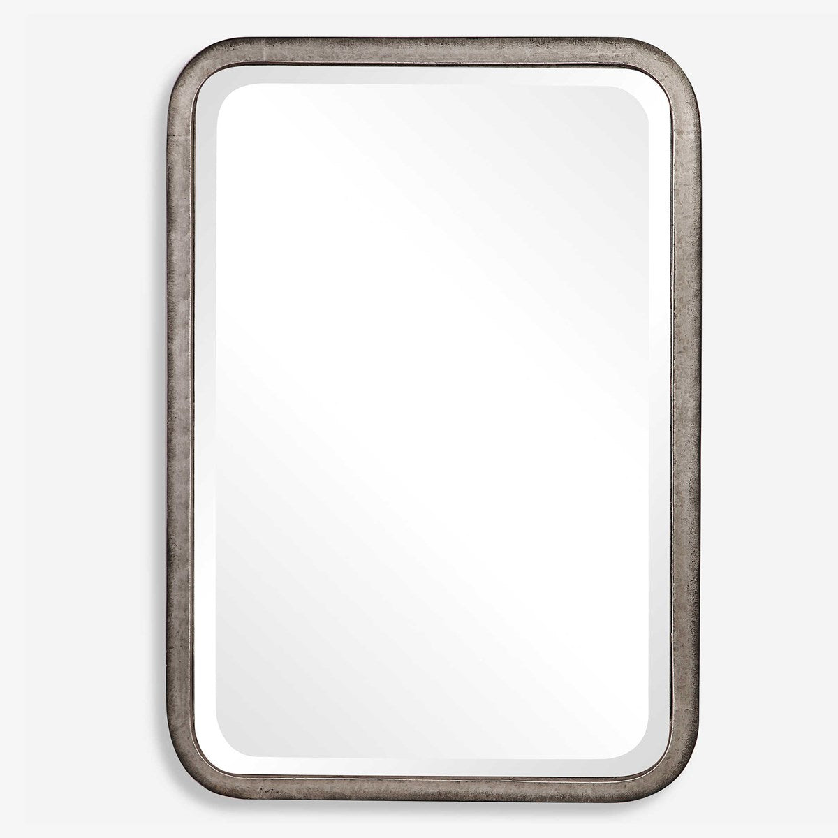 This Galvanized Iron Frame Features An Industrial Flair To Its Construction With Exposed Weld Tacks, And Burnished Edges. Mirror Features A Generous 1 1/4" Bevel And May Be Hung Horizontal Or Vertical.