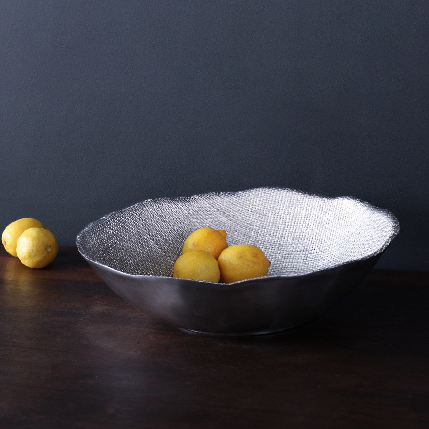 The new SIERRA MODERN Chelsea extra large bowl in a gunmetal tone is a notable example. Its richly textured surface adds a modern edge to any decor. A great bowl with a fabric-inspired texture, and a distinctive metallic finish. Food- and dishwasher-safe, decorative, and also perfect for serving. Dishwasher safe, pieces will not chip, peel or stain. Great gift item. These products are intensely handmade products use eco-friendly and sustainable materials and are crafted by artisans who trace a heritage of metalworking for generations. Made of a top quality, FDA safe, easy-care aluminum alloy.