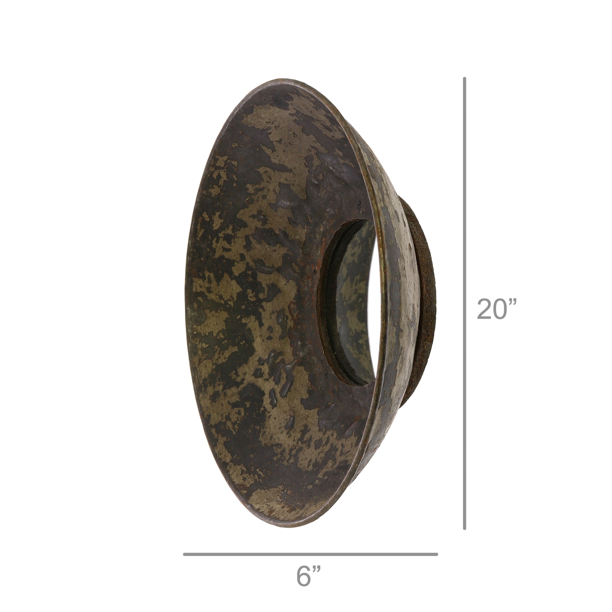 Salvaged Metal Bowls, which were once used for the transport of rocks and soil, are given a break from the heavy lifting and turned into a concave form for a mirror. Each piece is unique, shapes, sizes and finish will vary.
