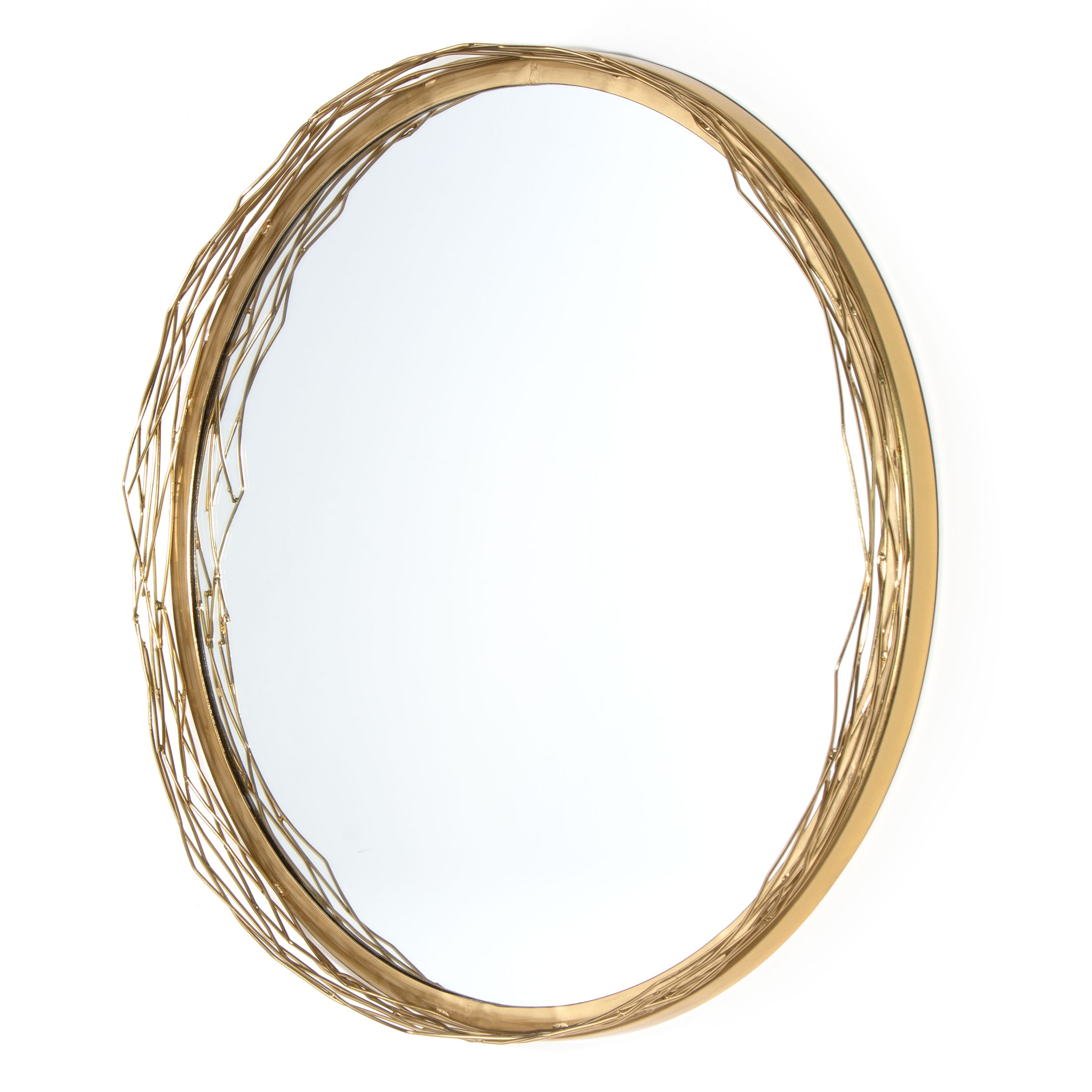 This decorative wall mirror has elegant iron branches weaved all the way around, creating a sense of depth. Hang it on its own, or create a full wall piece by hanging two or three together.
