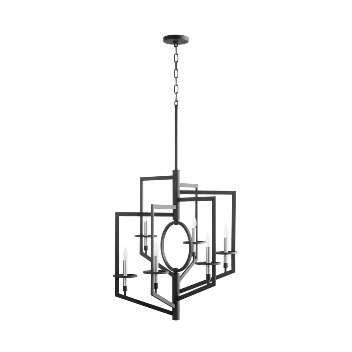 The Oxalis Chandelier is a modern twist on a traditional design. Switch up your look with included interchangeable aged brass, black, and satin nickel candle sleeves. This chandelier is a fashionable, decorative lighting fixture, perfect for residential and commercial living spaces.