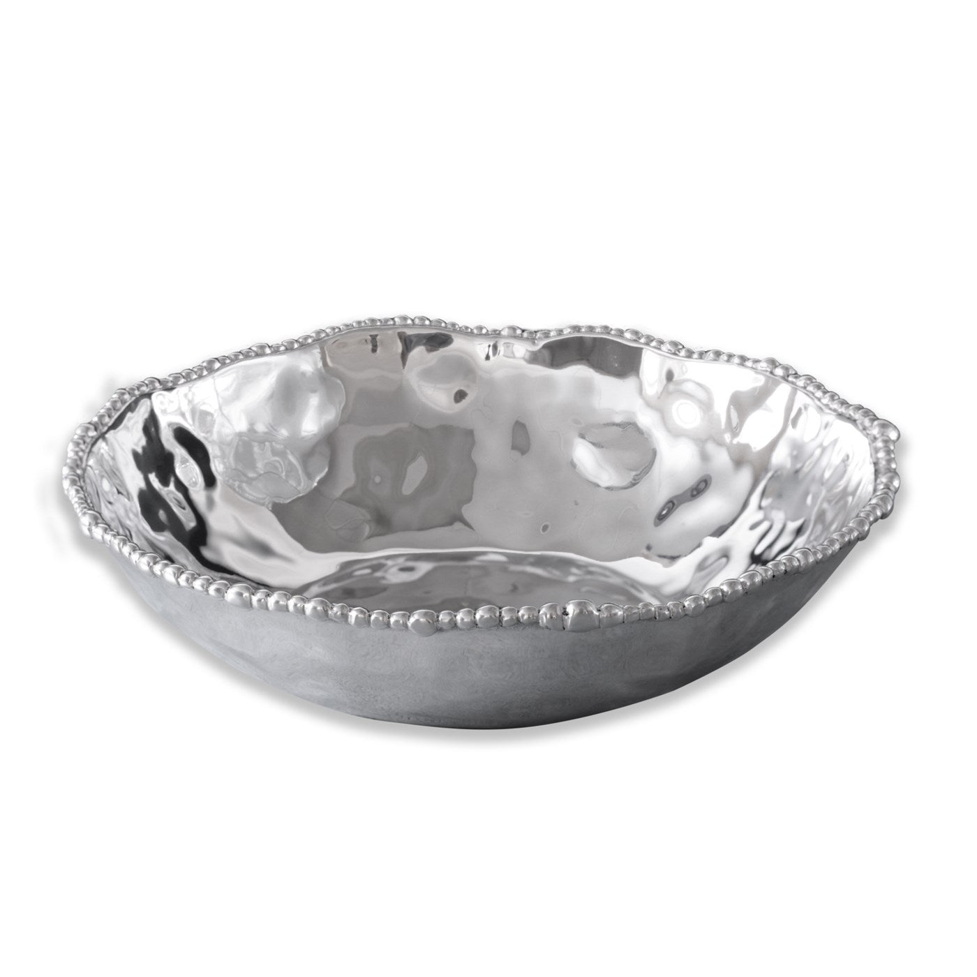 Rimmed in sparkling metallic “pearls” of varying sizes, and distinguished by its imposing size and generous serving area, the bowl is a must-have for lively entertaining. Great for fruit, salads, and more. Makes a singular centerpiece and a unique gift. Intensely handmade products use eco-friendly and sustainable materials and are crafted by artisans who trace a heritage of metalworking for generations. Made of a top quality, FDA safe, easy-care, oven and freezer friendly aluminum alloy.