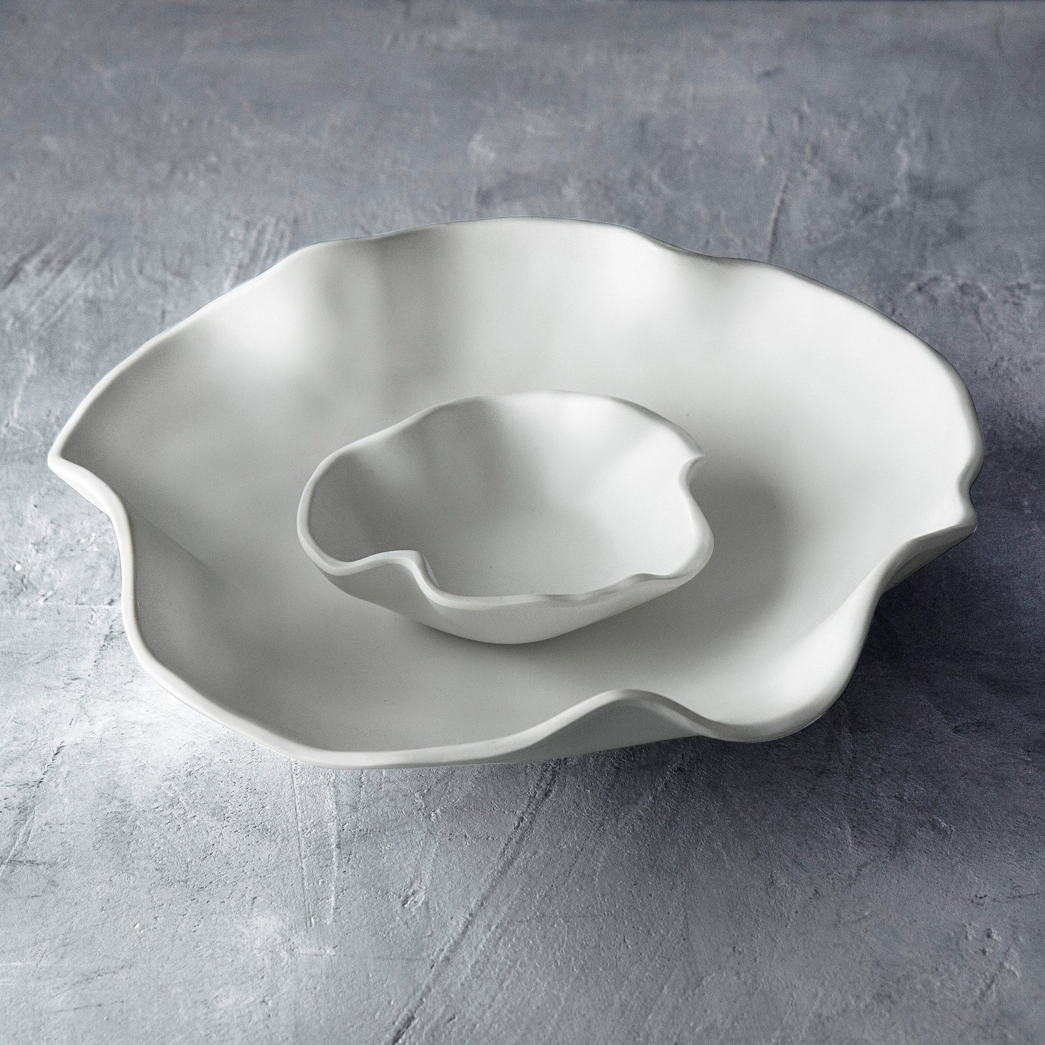 A chip and dip of the utmost style, sophistication, and pizzaz. Nube Chip & Dip is distinguished by its undulating surface, innovative design, bisque-like finish. Made of luxury melamine for everyday enjoyment, this piece is ideally suited for indoor and outdoor entertainment. Dishwasher safe (top rack), heavy-weight, break resistant and durable, food safe, BPA and PABA free.