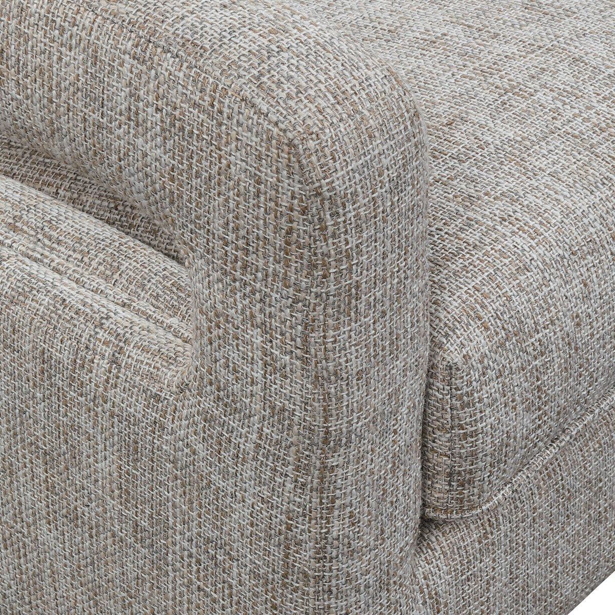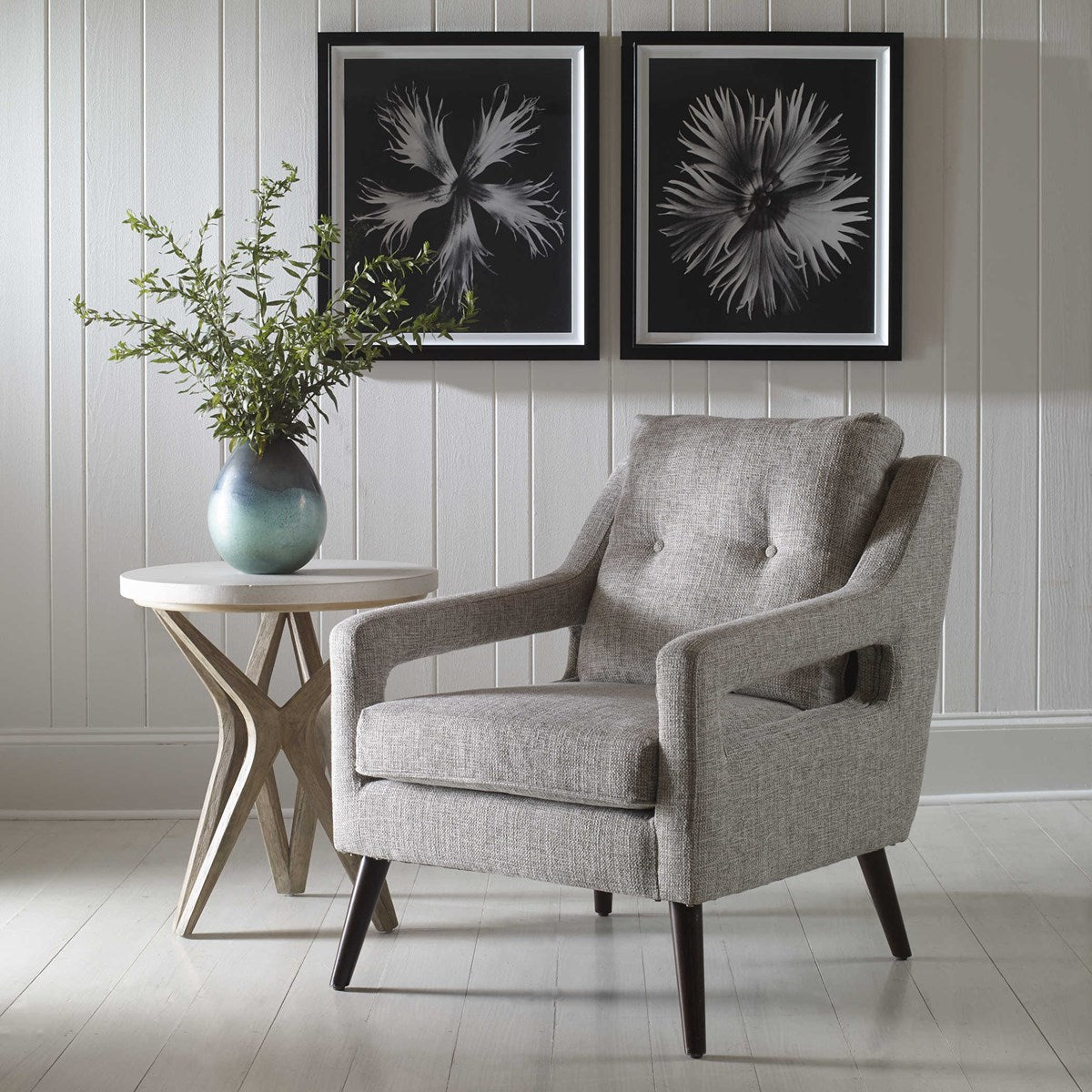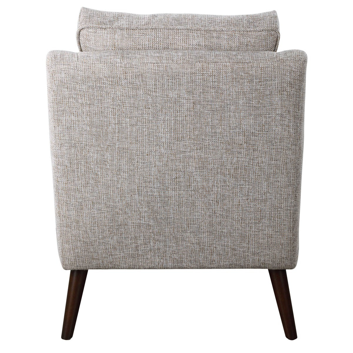 A Nod To Classic Scandinavian Style, This Open Arm Style Chair Is Tailored In A Woven Linen Blend Fabric In Natural Stone Hues With A Button Tufted Back Cushion And Dark Walnut Finished Wood Legs. Seat Height Is 19".