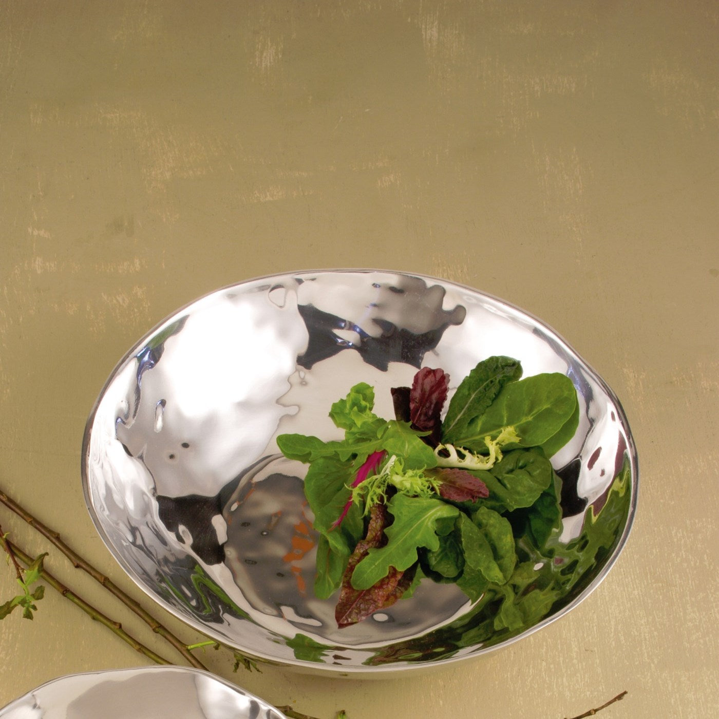 Uncomplicated and straightforward design. The versatile Organic decorative silver bowl coordinates with all of our collections and is equally at home with your casual dinnerware or dressed up for a party. Made of a top quality, FDA safe, easy-care, oven and freezer friendly aluminum alloy.