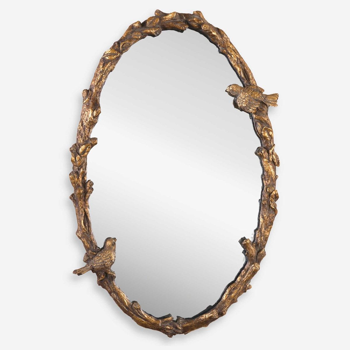 This Frame Features A Bird And Vine Design. The Finish Is Distressed, Antiqued Gold Leaf With A Gray Glaze.