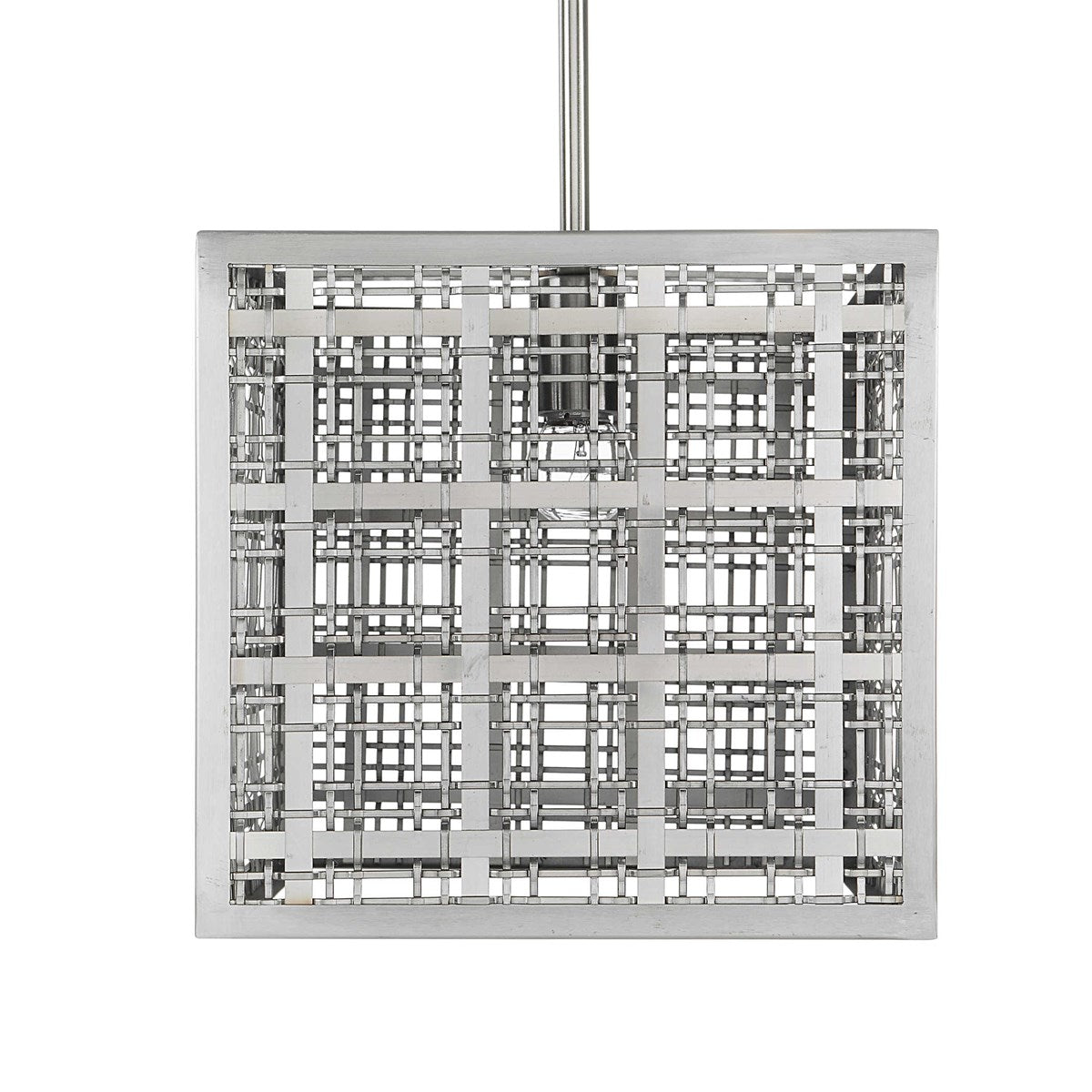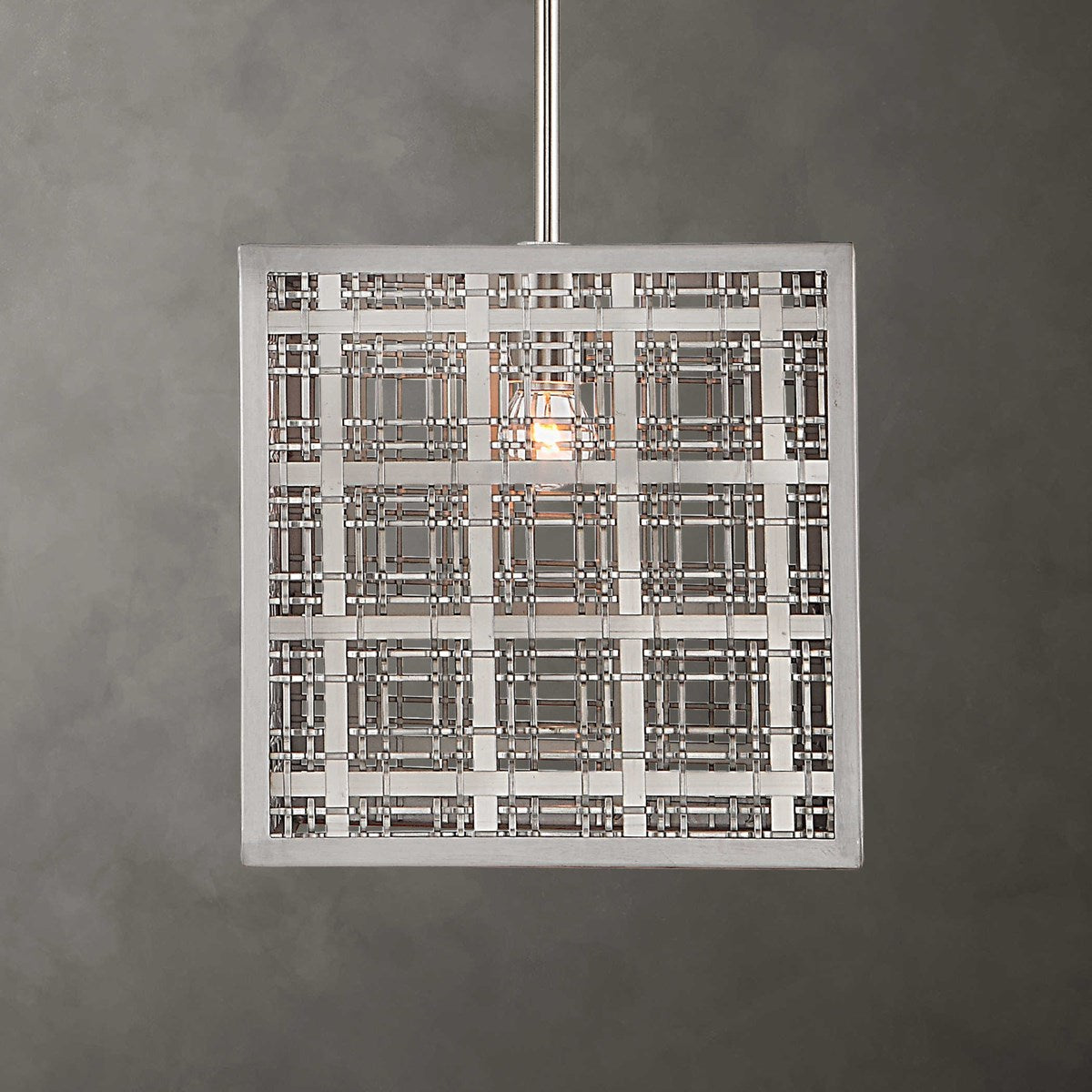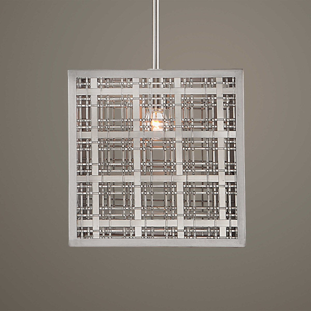 Plaid Patterned Woven Satin Nickel Strips Give Us An Updated Traditional Feel For This Classic Square Pendant. 1-60 Watt Max Edison Socket. Bulb Not Included. Supplied With 15' Wire, 3-12" Stems And 1-6" Stems For Adjustable Installation.
