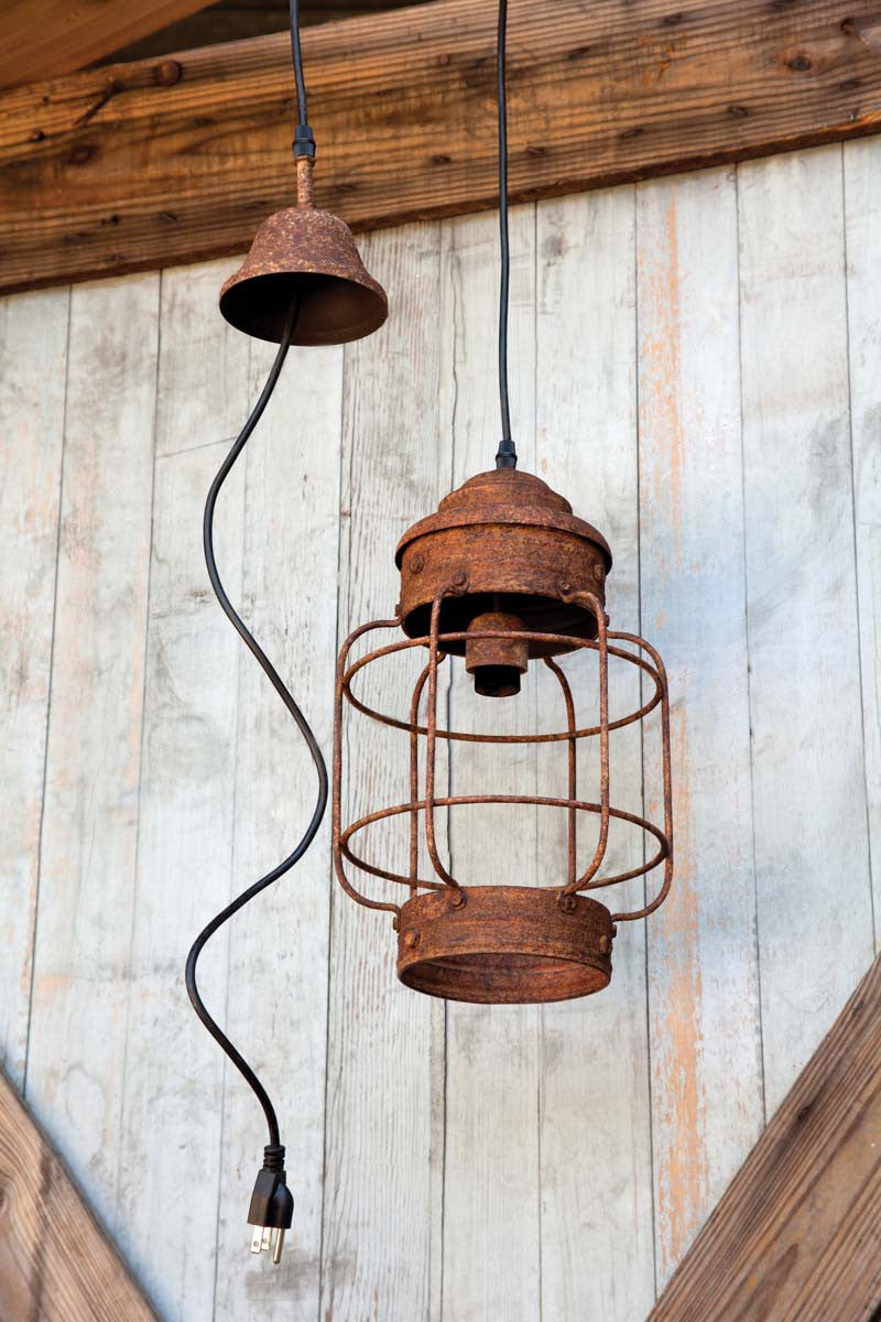 With its rust finish, this hanging lantern light resembles an industrial salvage piece. This piece is unique and adds a rustic and industrial element to a space.