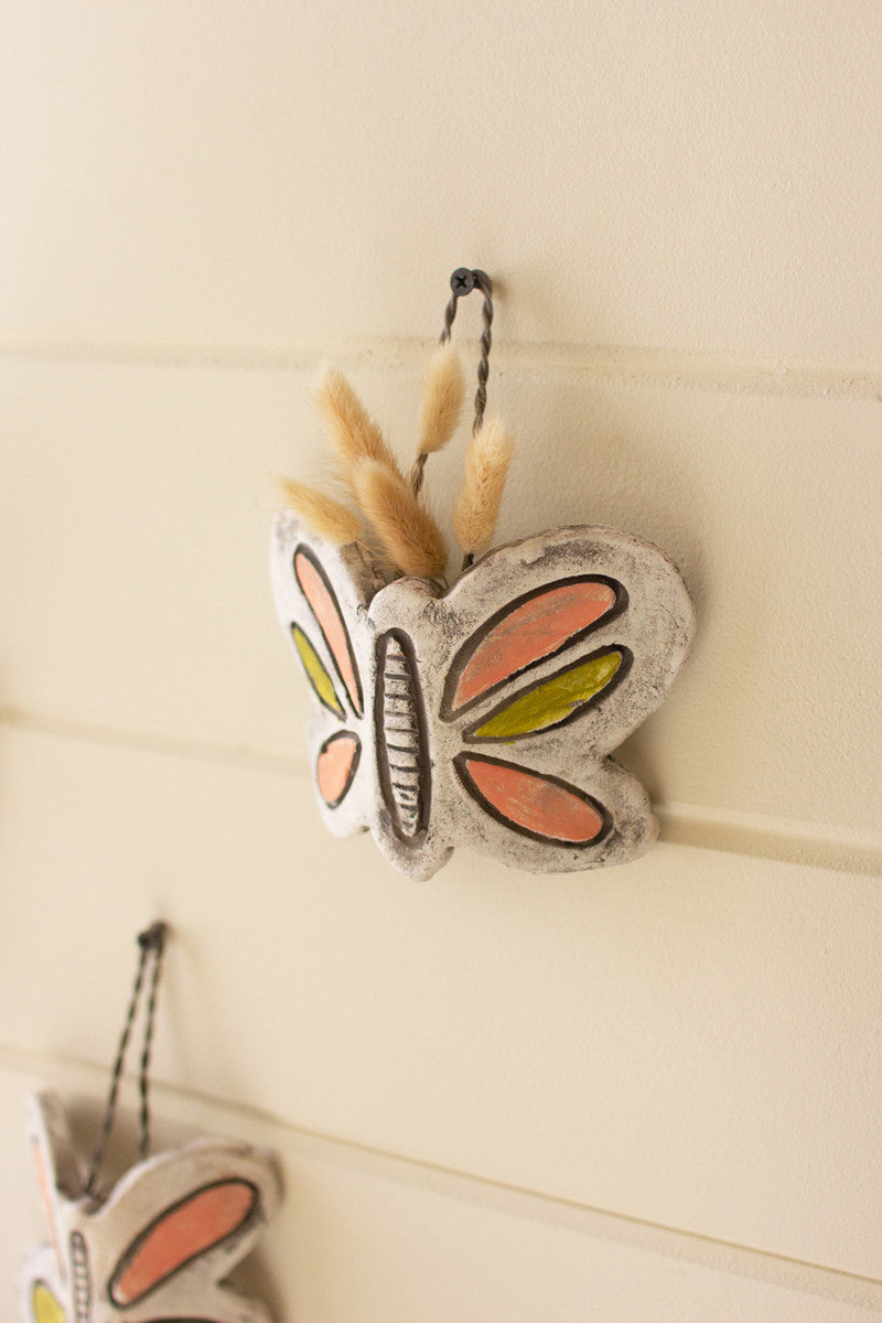 Set of 3 Hanging Clay Butterfly Bud Vases