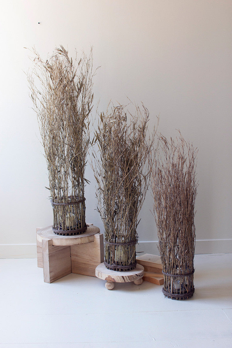 Set of 3 Tall Natural Bamboo and Wood Lanterns