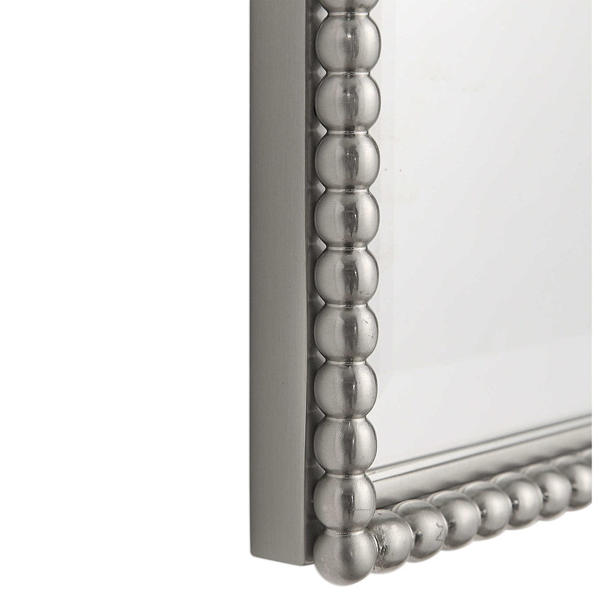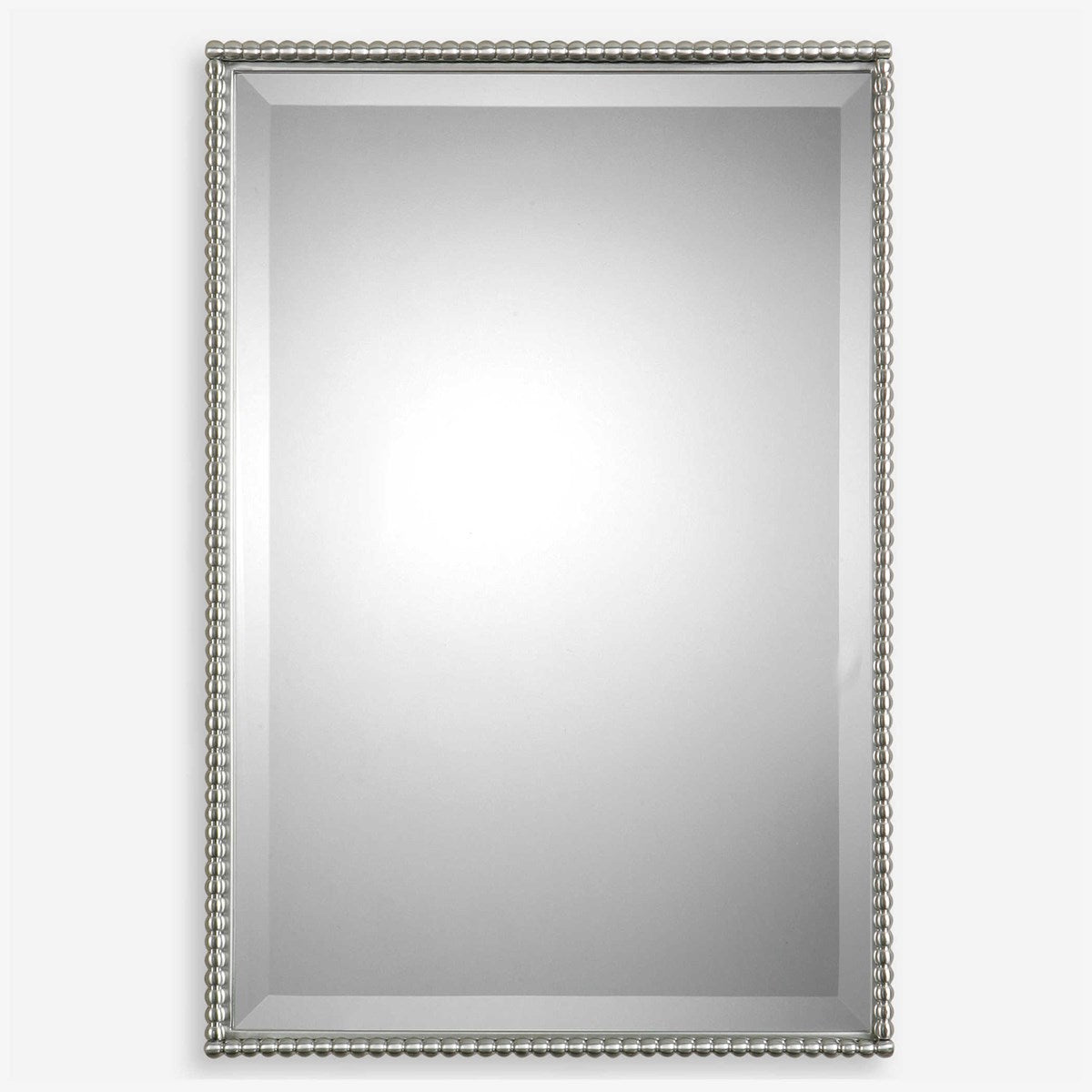 Brushed Nickel, Metal Frame Features A Decorative Beading Design. Mirror Features A Generous 1 1/4" Bevel And May Be Hung Horizontal Or Vertical.