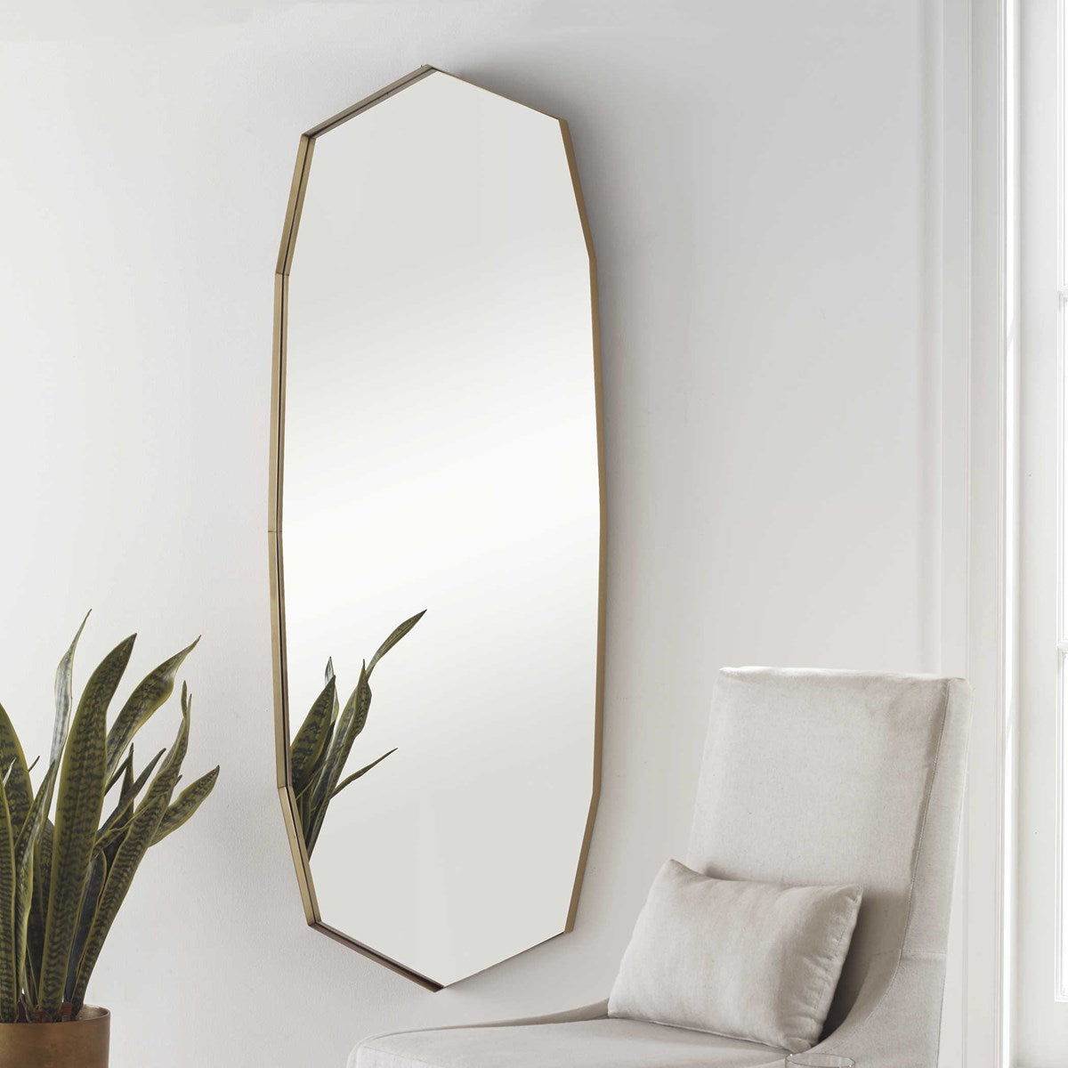 Displaying A Contemporary Feel, This Oversized Mirror Features A Deep, Angular Metal Band Frame Finished In Plated Antique Brass. May Be Hung Horizontal Or Vertical.