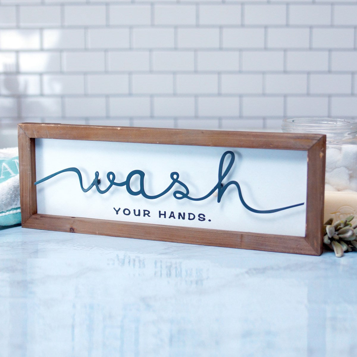Wood Framed Metal Laser Cut Wash Your Hands Sign